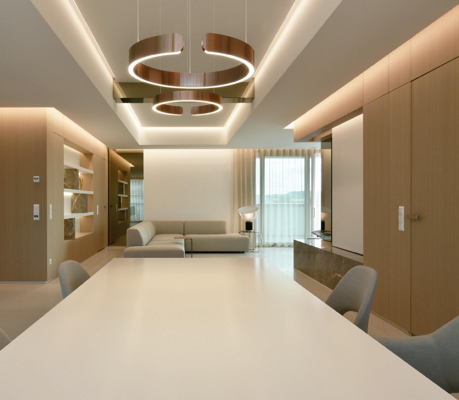 Les fonctions hétérogènes (gaines, technique, électroménagers, etc) y sont dissimulées pour ne laisser paraître qu’un espace épuré et structuré par de grandes perspectives. Celles-ci confèrent aux projets de l’agence une force visuelle, une sensation accrue d’espace.