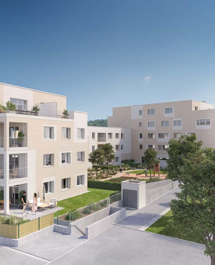 At the heart of the residence, a landscaped courtyard offers playgrounds, a shared garden and relaxation areas, encouraging community and social ties.