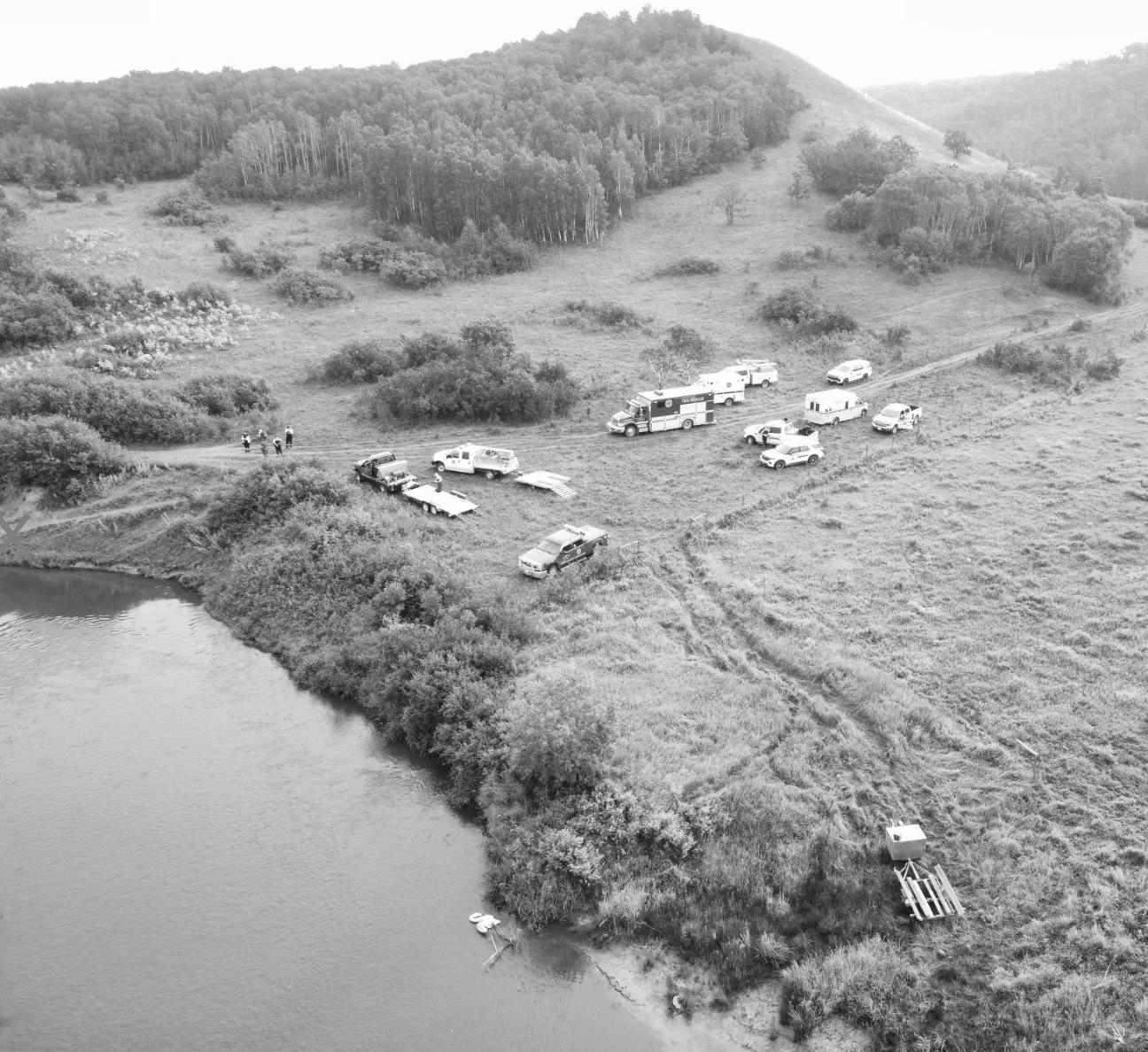 Searchers with RCMP andgency Medical Services. Local crop planes circled the area, local department had their boat in the water, RCMP divers, RCMP Police Dog Services, RCMP Search