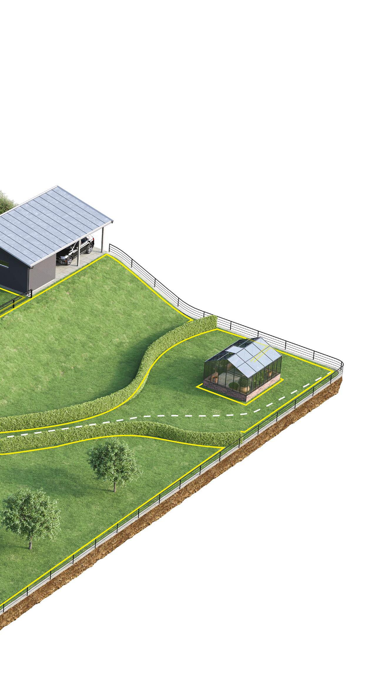 The guide wire helps ensure that Automower® reaches remote work areas. It also helps it find the shortest way back to the charging station, saving energy and avoiding visible tracks.