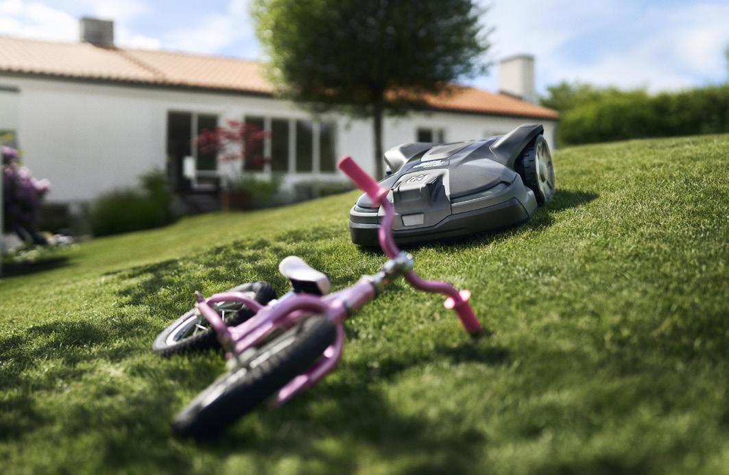 With Husqvarna Automower® you will unlock hours and hours of free time each year. Instead of mowing the lawn you can spend more time with your family and friends, and engage in activities and projects that are more enjoyable. And all the while, you can put your mind at ease knowing that your lawn is always kept in perfect shape by your robotic mower. Quietly and effortlessly, in rain or shine. Every garden is unique – including yours. That said, the many different models in the wide Automower® range cover everything from smaller urban gardens to challenging areas up to 5,000 m². Ensuring full coverage of complex lawns with remote areas and narrow spaces is a hallmark of the Automower® robotic mower. Tough slopes and uneven ground are matched by large wheels, low centre of gravity and optimized balance. If you have a garden with extreme challenges, our all-wheel drive model can tackle slopes up to an impressive 70 %.