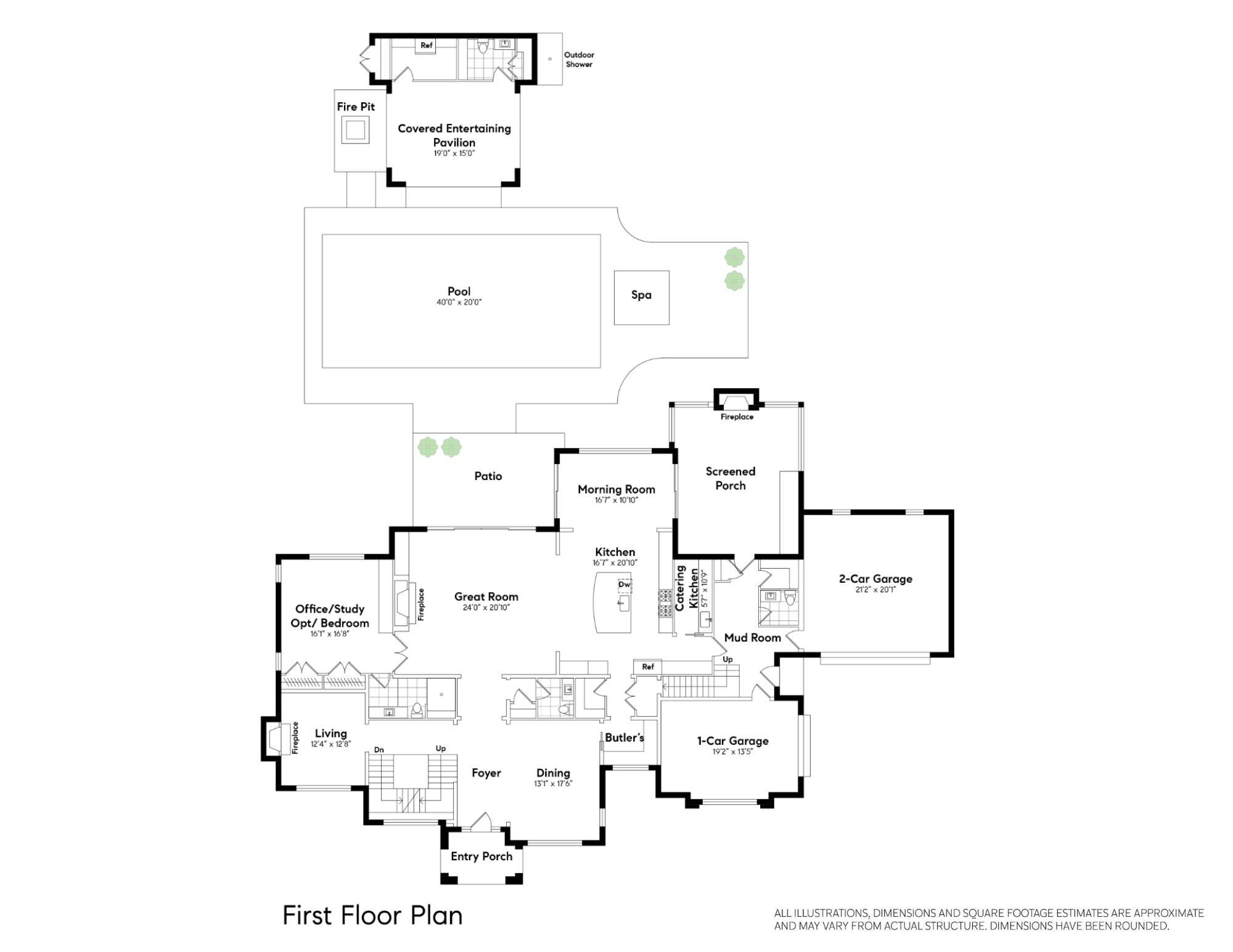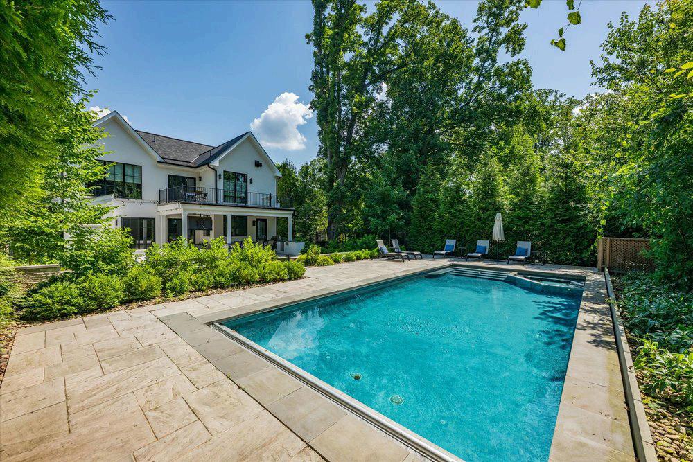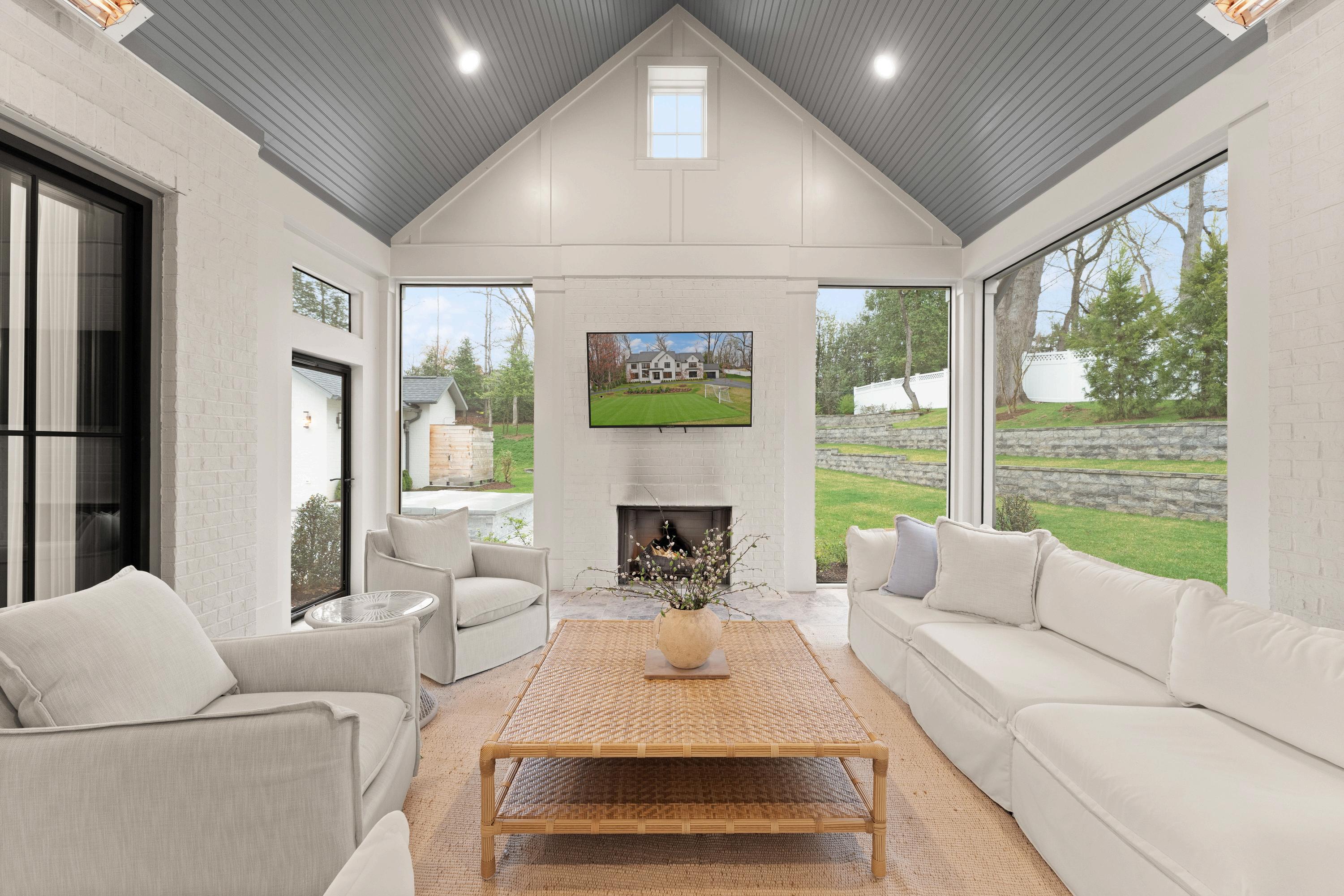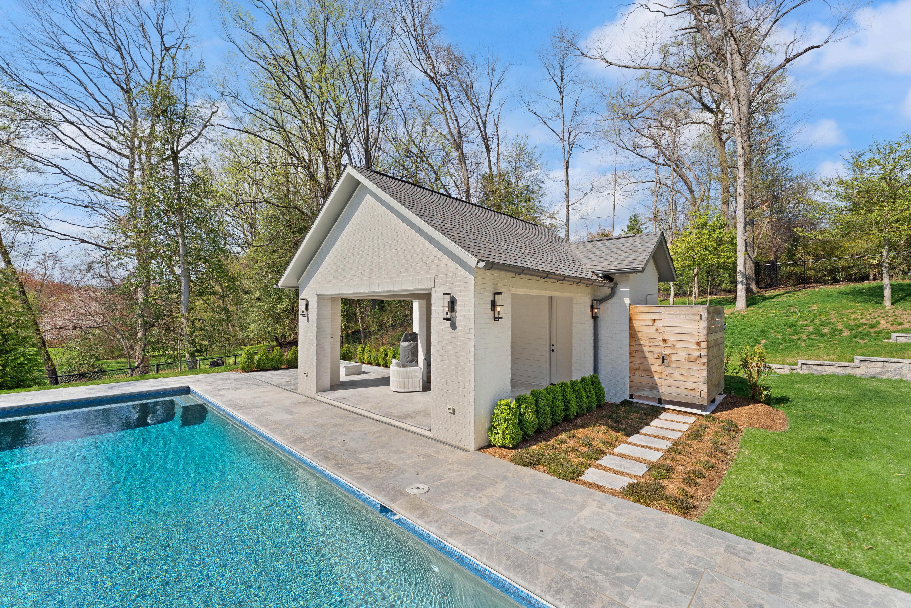 An unparalleled outdoor retreat awaits at the rear of this exceptional property. A stunning 40' x 20' heated in-ground pool, complete with an automatic cover, separate spa, and elegant Turkish marble decking sets the stage for resort-style living. The pool house and covered entertaining pavilion serve as the ultimate warm-weather escape, offering a powder room, outdoor shower, beverage refrigerator, and a lounge area anchored by a built-in linear gas fire pit. A generous patio flows seamlessly off the main level, while the spectacular screened porch featuring a vaulted ceiling with in-ceiling heaters and a gas fireplace ensures year-round enjoyment in effortless style.