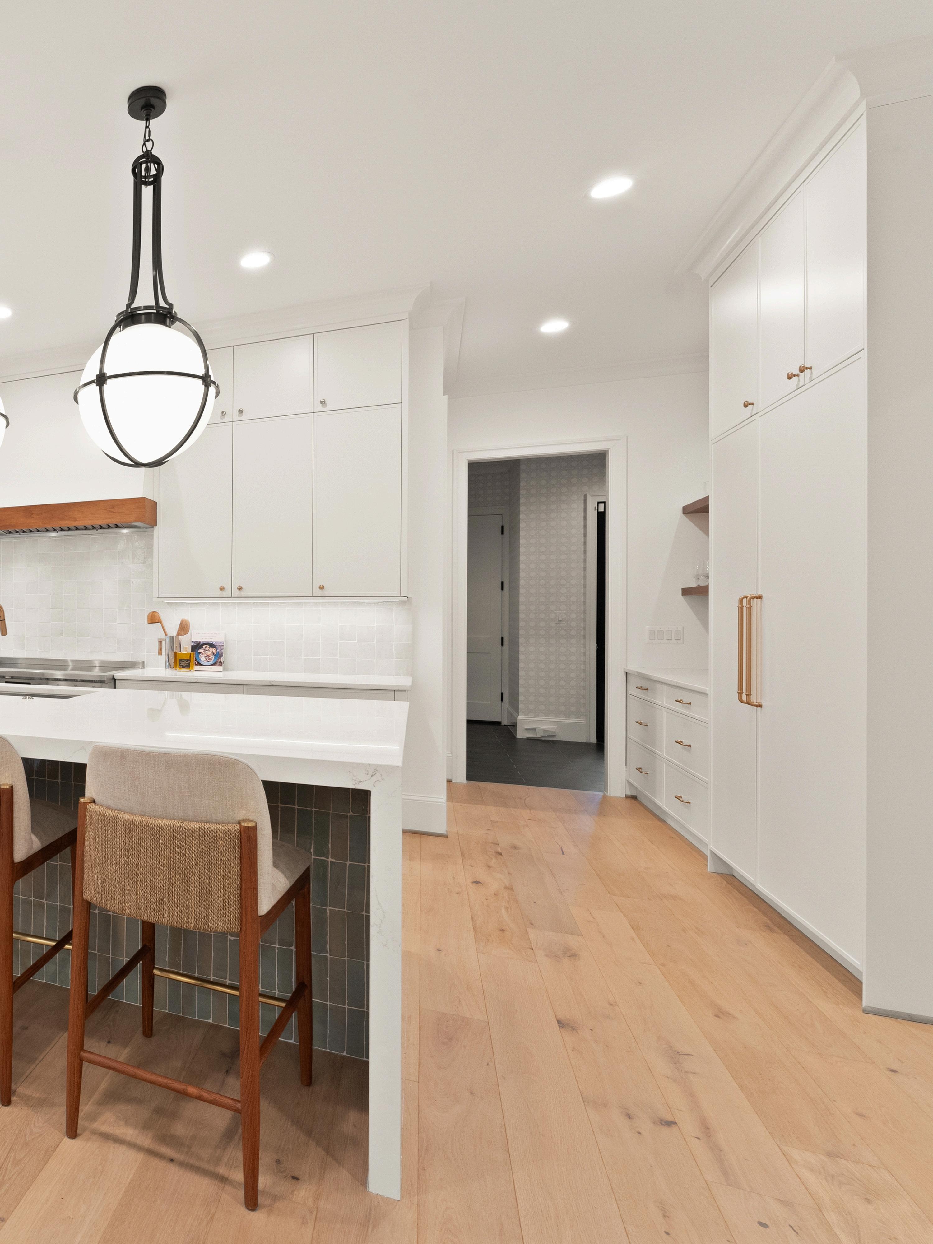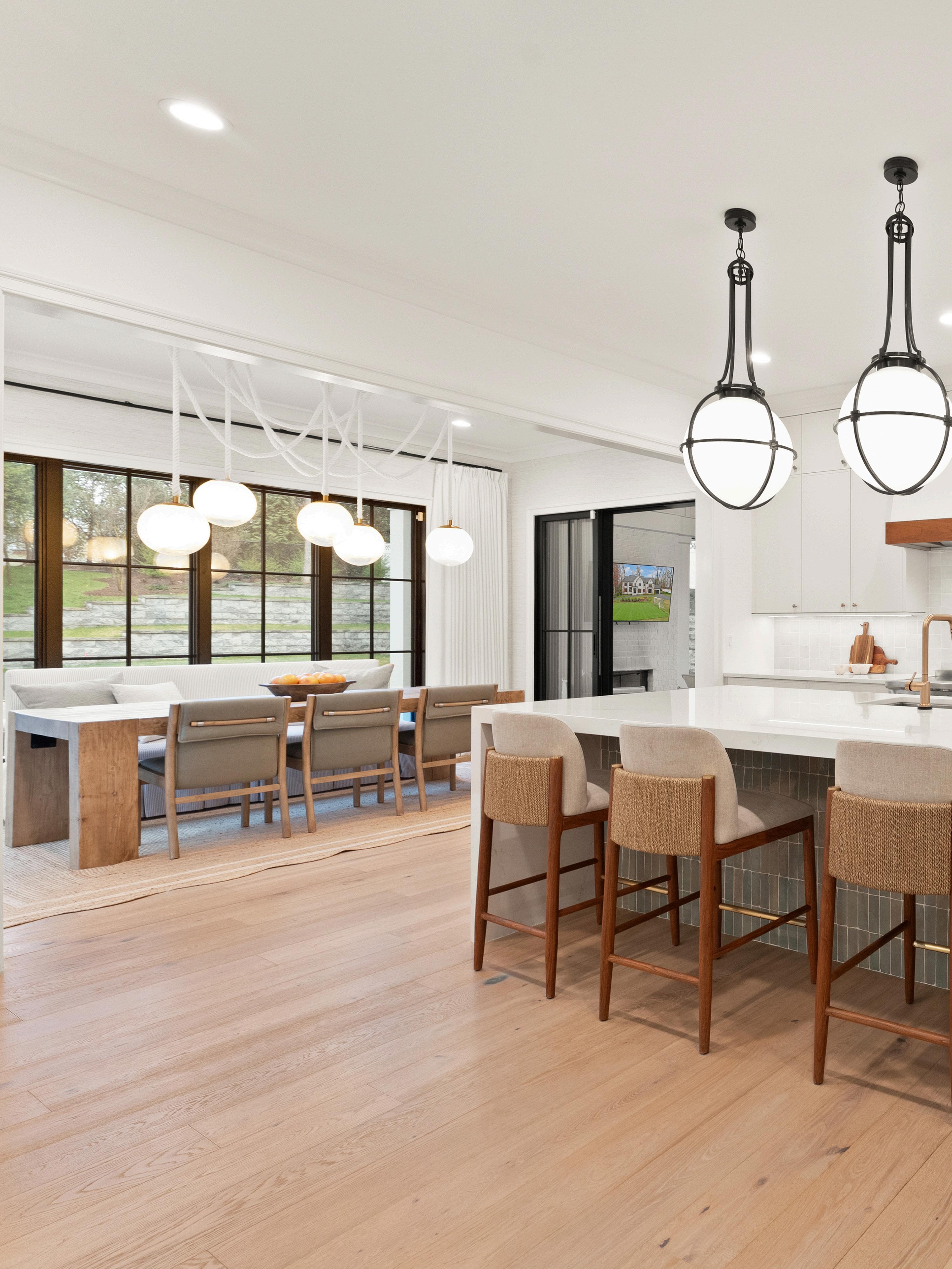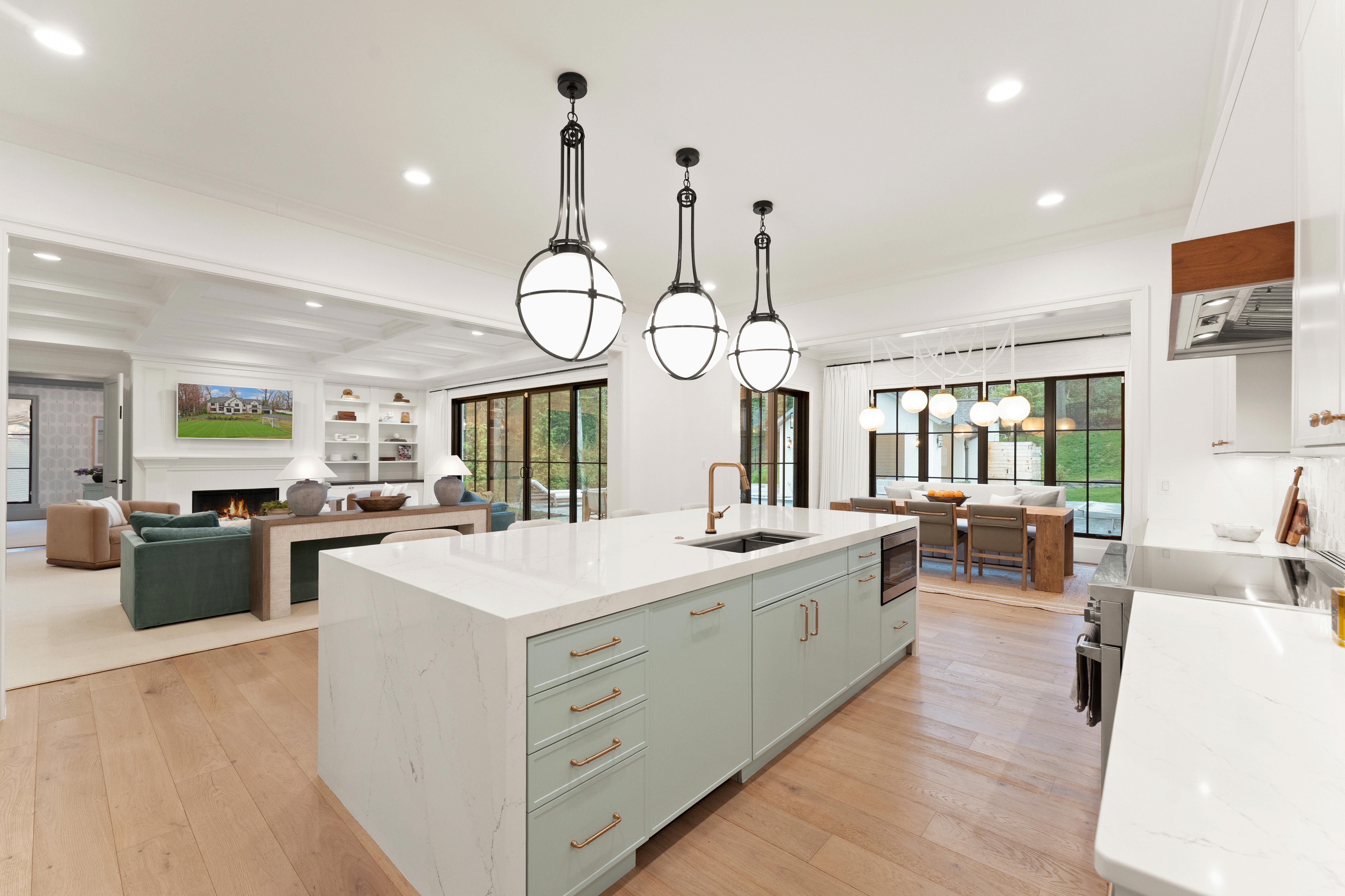 At the heart of the home lies a stunning gourmet kitchen that effortlessly blends beauty and function. Top-of-the-line appliances, quartz countertops, and custom cabinetry create a space that is as refined as it is practical, while a dedicated prep pantry ensures seamless hosting at any scale. The light-filled morning room flows naturally from the kitchen, offering the perfect casual dining setting with direct access to both the patio and the spectacular screened porch beyond. Open to the great room with its coffered ceiling, fireplace, and custom built-ins, the kitchen serves as the true gathering hub of the home a space where everyday living and elegant entertaining feel like one and the same.