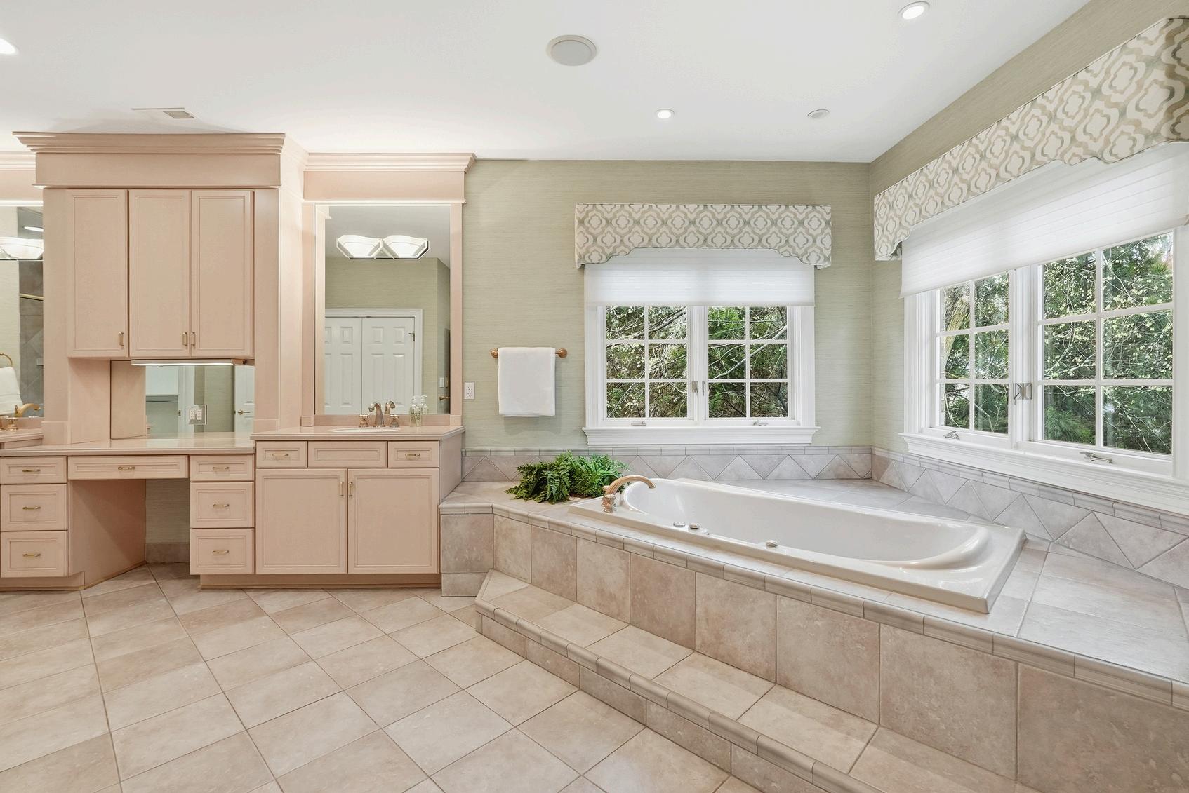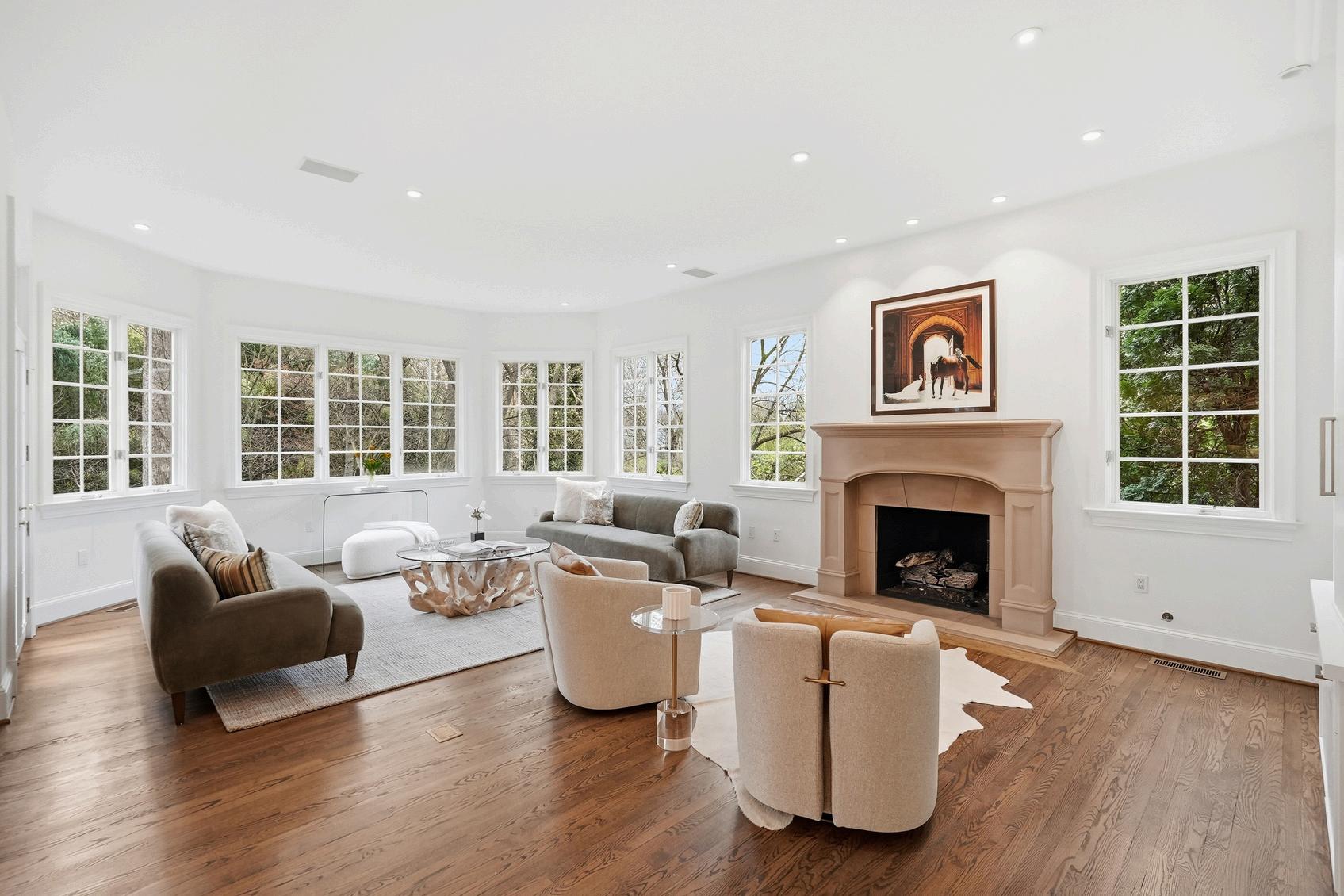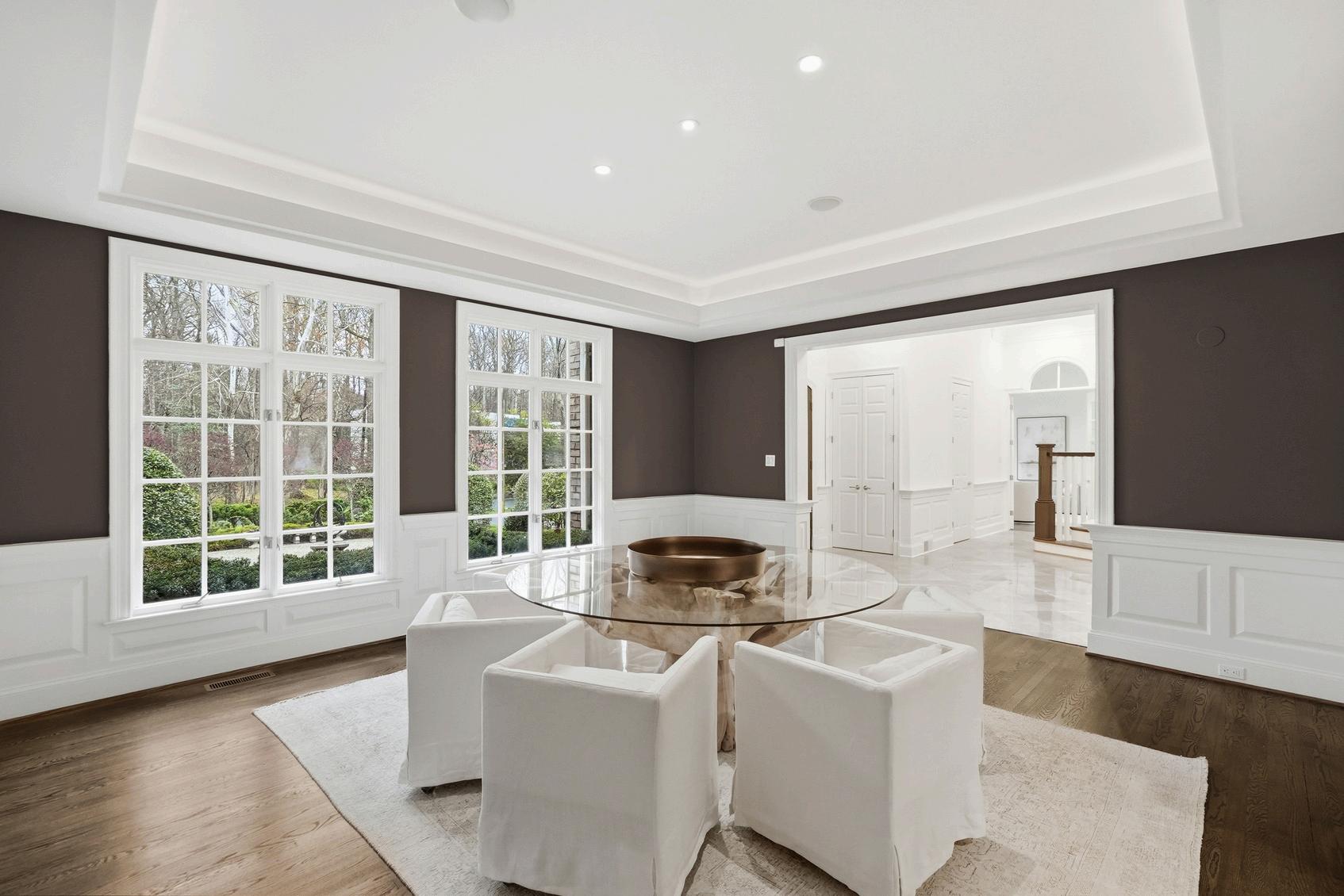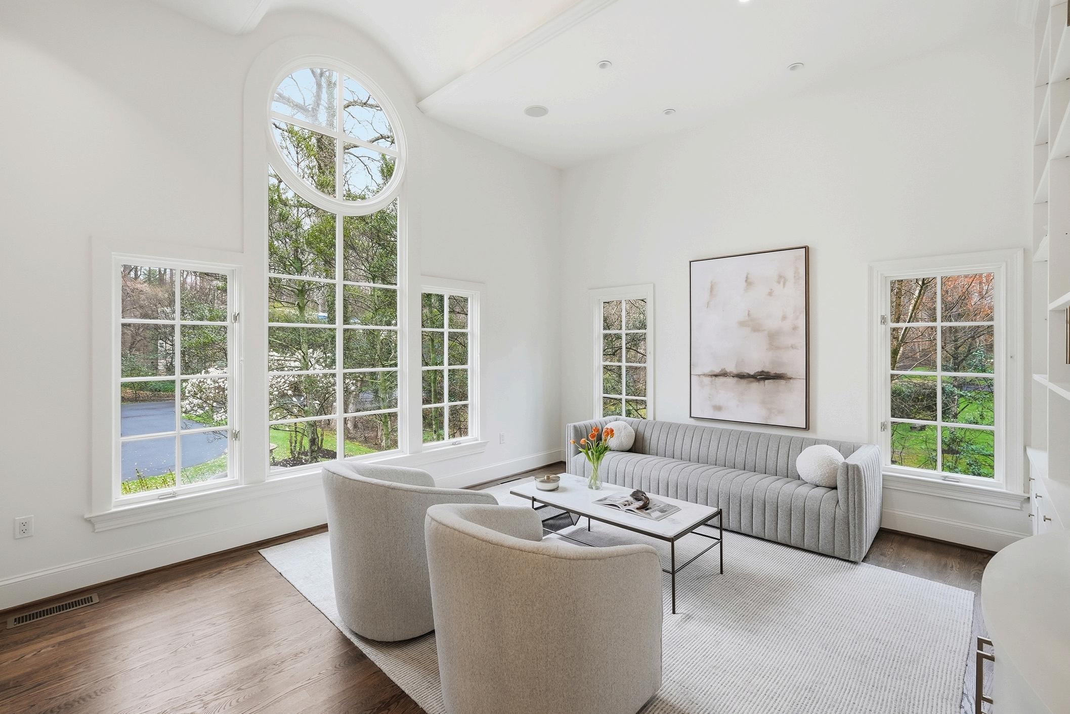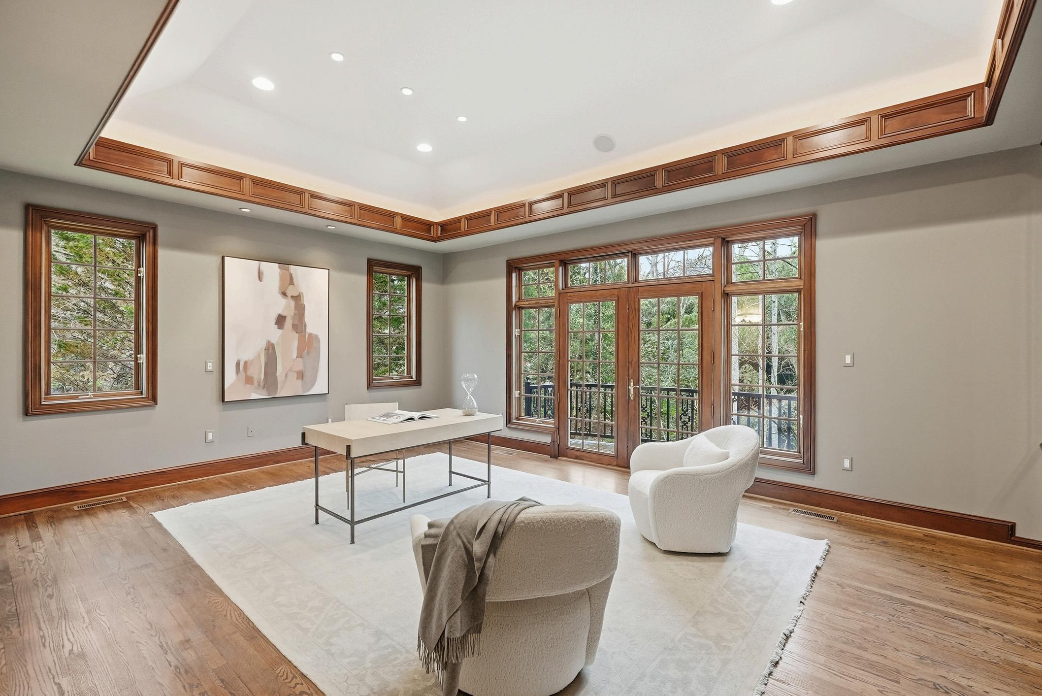 Two distinct main-level office/library spaces, including a sun-filled front-facing sunroom and a separate library/guest suite with walk-in closet and full bath, offering exceptional flexibility for work, relaxation, or guest accommodations