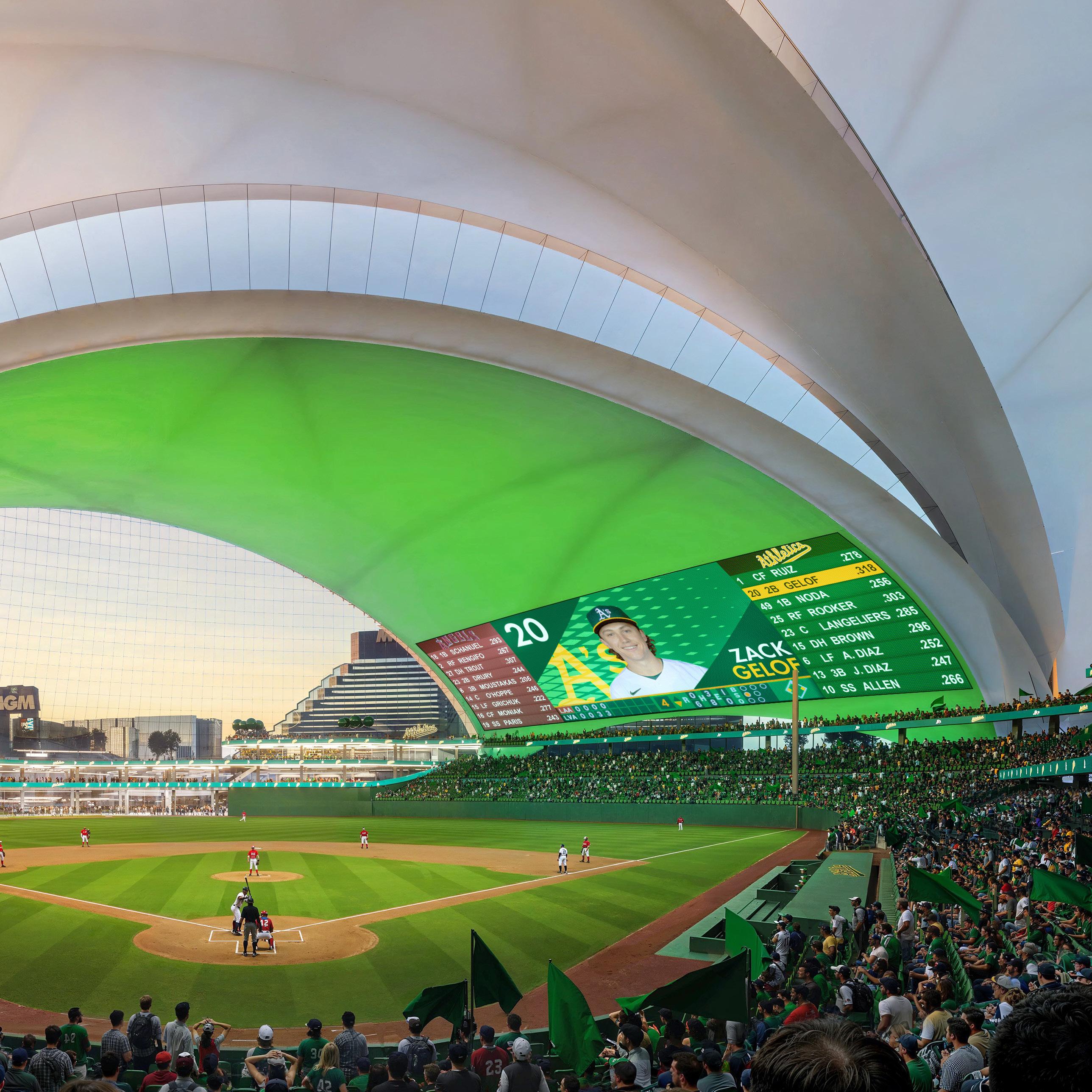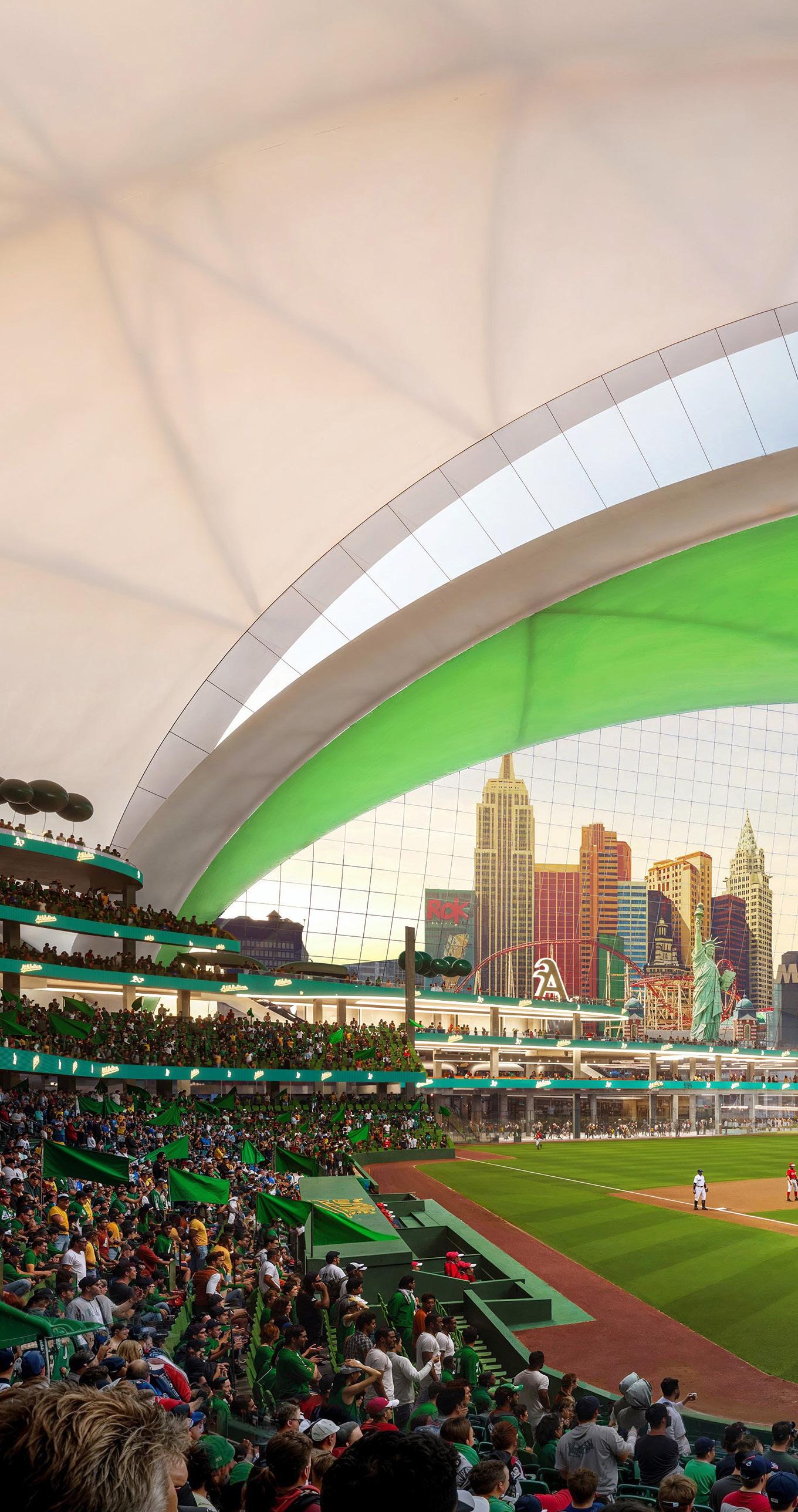The 33,000-seat ballpark’s design includes one of the world’s largest cable-net façades.