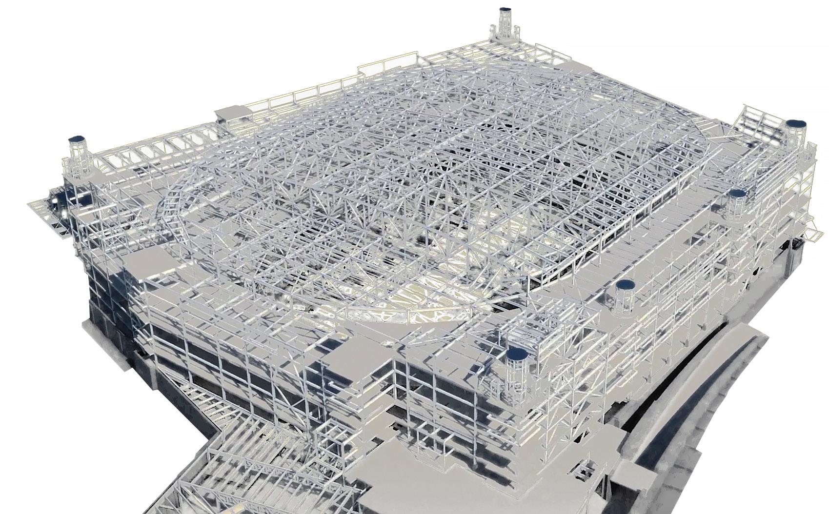 Through our Advanced Project Delivery process, we delivered a coordinated Tekla steel model and shop drawings for the temporary roof shoring. Early fabrication shaved roughly four months off the schedule.