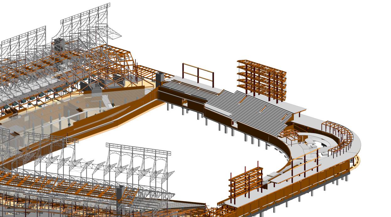To help meet a tight schedule and budget, our CORE studio developed an efficient clash-detection workflow for wall openings and automated modeling of precast concrete seating elements within the stadium bowl.