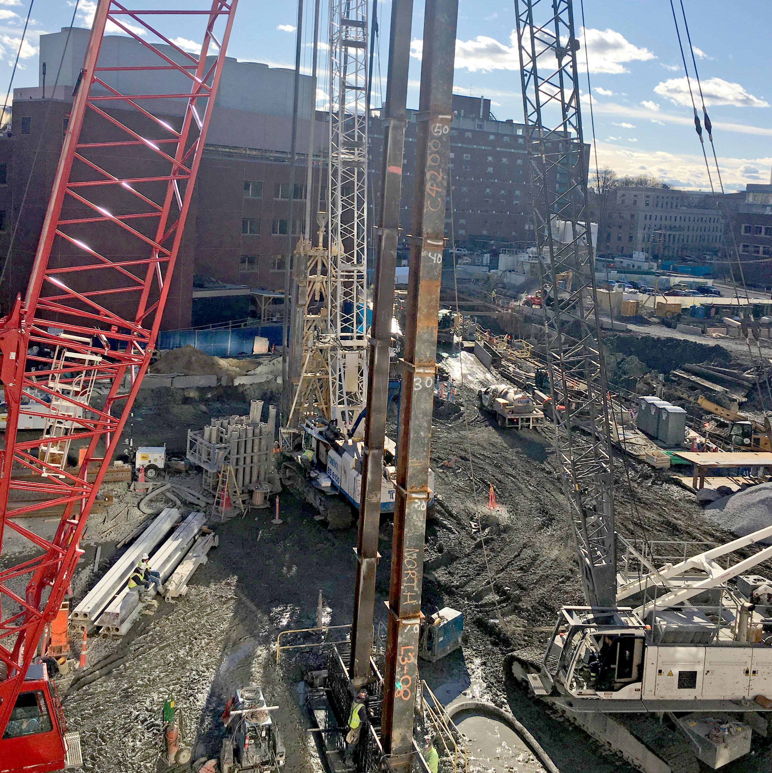 We provided engineering services to enable below-grade construction in one of the most congested areas of Boston. Our work included the design of a support-of-excavation system using a slurry wall for a 75-foot-deep excavation and a 75-by-145-foot construction podium over the excavation site, all while minimizing settling of the adjacent buildings’ footings. Our computer simulation demonstrated exceptional agreement between wall movement measurements from our numerical simulations and those from actual field monitoring.