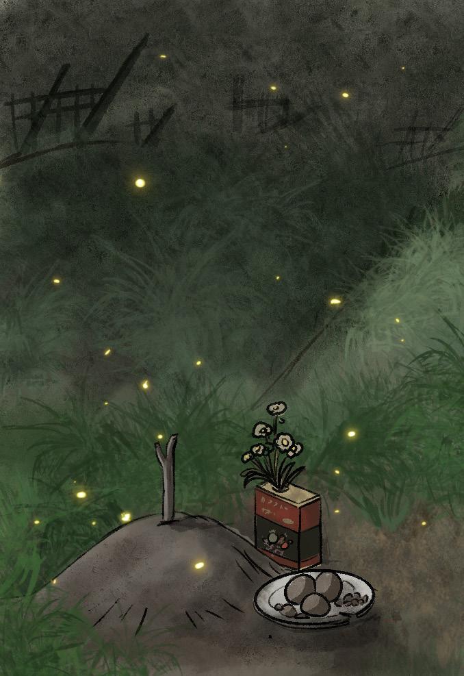 Seita nodded. The fireflies rose into the sky, fading into the night...