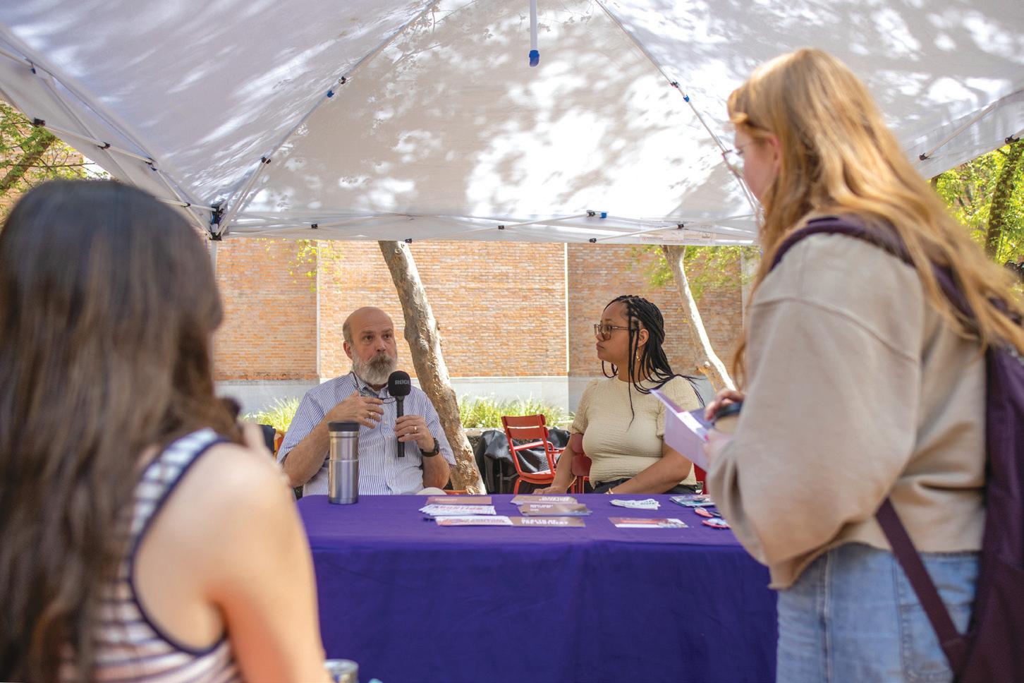 two main speakers held discussions with any Rice students who stopped by the table and recorded these conversations.