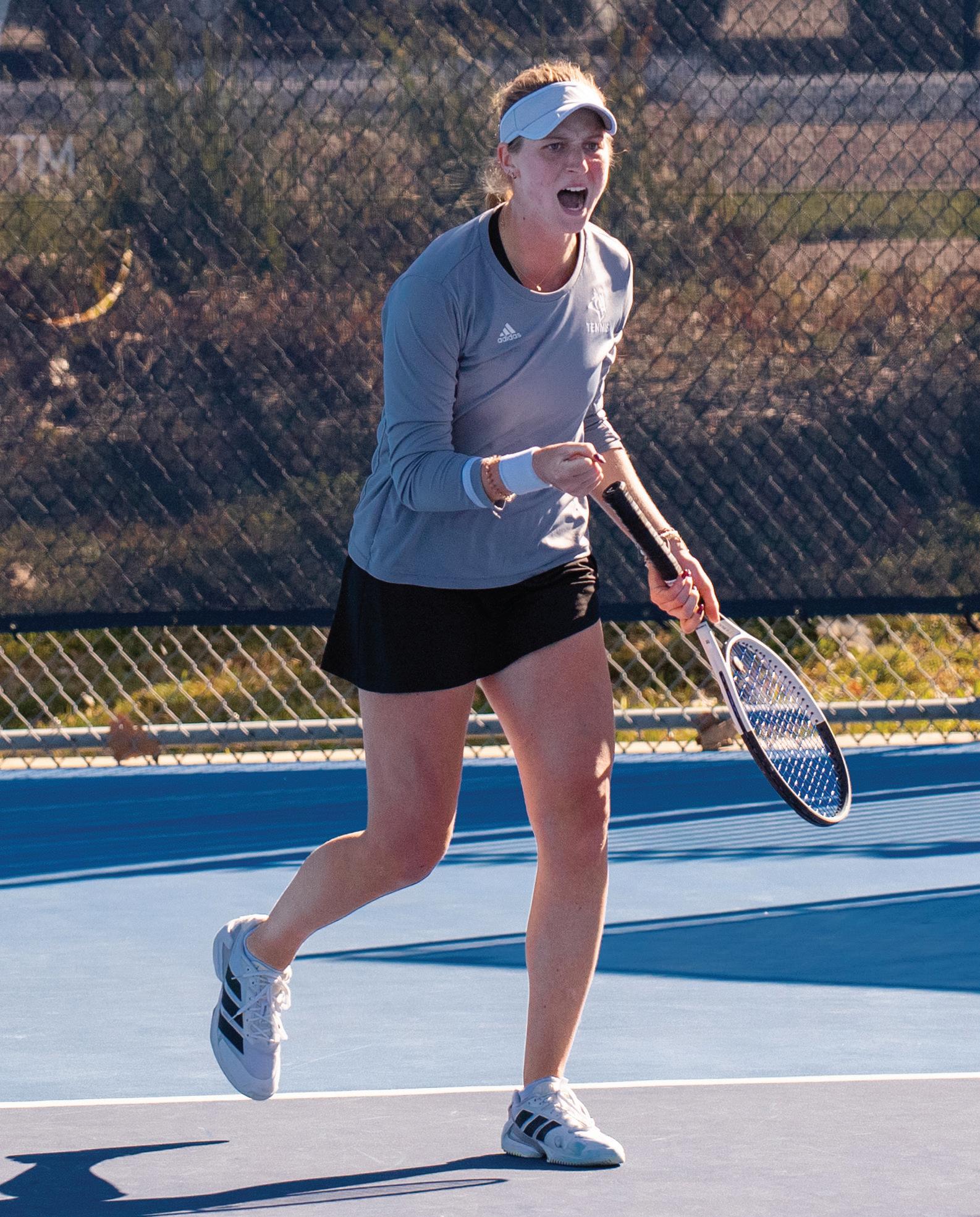 “Ema has been very disciplined in making a lot of shots, and college tennis is about that,” head coach Elizabeth Schmidt said. “She’s learning when to step up her pace, and she’s really starting to nd her rhythm.”