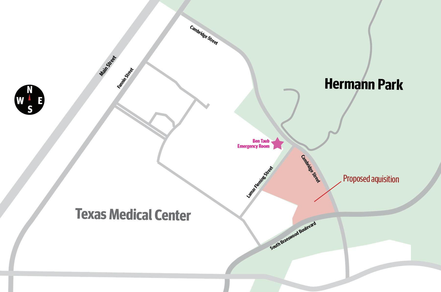 Harris Health said it is important for Ben Taub Hospital to remain in the Texas Medical Center. The proposed land seizure is property of Hermann Park — land historically taken away from the Texas Medical Center — located near Ben Taub Hospital emergency and trauma center, bordered by Lamar Fleming Avenue, Cambridge Street and South Braeswood Boulevard.
