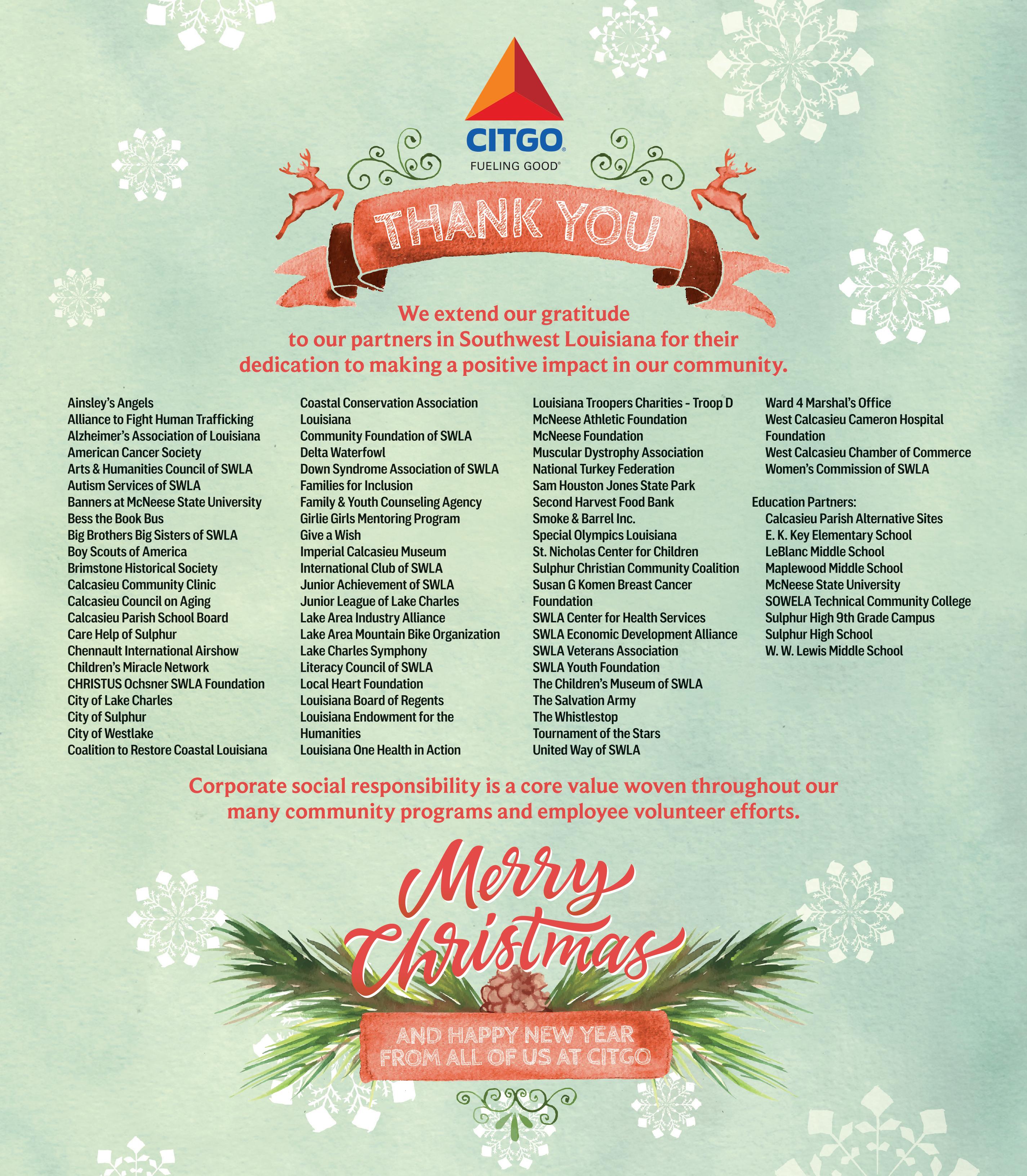 Sterling Neblett, vice president and general manager of CITGO Petroleum Corporation, Lake Charles Refinery, expressed deep pride in CITGO's involvement, stating, “We