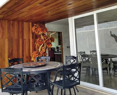 Cochera techada 2 autos. Sala comedor, 3 recámaras con baño, ppal con vestidor. PA: cuarto de tv y juegos con baño, recámara principal con vestidor, baño y jacuzzi. Alberca.