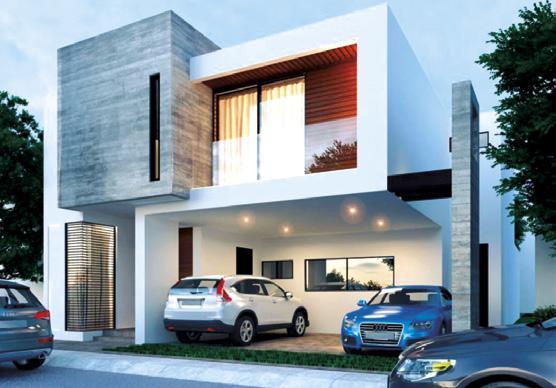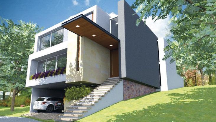 PB: cochera 3 autos. PA: estudio, 1/2 baño, cocina, sala comedor, recámara con vestidor, baño y balcón, cuarto de servicio, jardín. 3º nivel: 2 recámaras con vestidor y baño, hall de tv, terraza.