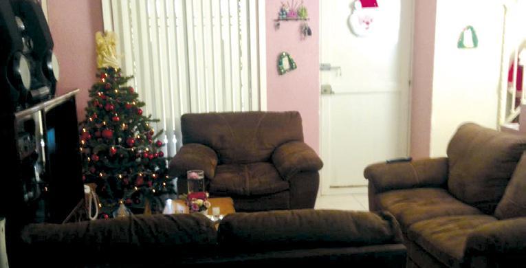 Casa de una planta. 3 recámaras con baño, hall de tv, sala comedor, cocina integral, cuarto de servicio con baño, cochera 3 autos pequeños o 2 grandes con portón automático.