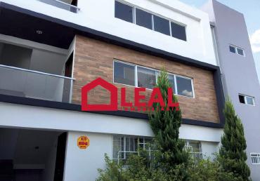 PB: sala, cocina equipada, comedor, medio baño, bodega. PA: 2 recámaras con clóset, 1 recámara con vestidor y baño, terraza con medio baño. 2º piso: área de lavado.