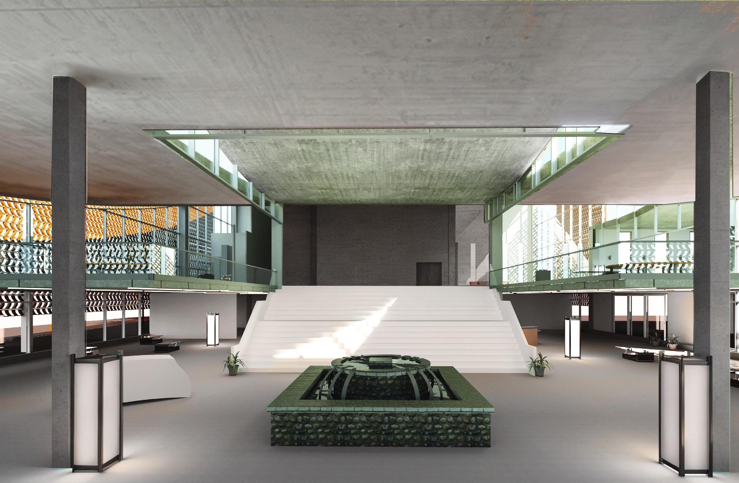 The building’s exterior features a clay facade that provides sustainable shading, while interiors of exposed concrete amplify the tactile quality of natural materials, bringing visitors closer to the essence of the handmade. Inspired by the gentle curves of the adjacent waterways, the undulating roof mirrors these natural shapes, allowing for solar panel installation to further enhance its environmental design. The museum’s approach to the Local, the Phenomenological, the Sensory, and the Handmade provides an antidote to our culture of maximum harm, offering a space for meaningful connection with nature through craftsmanship.
