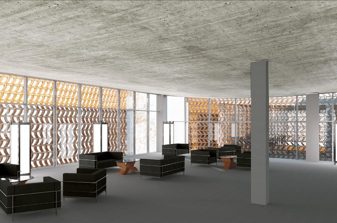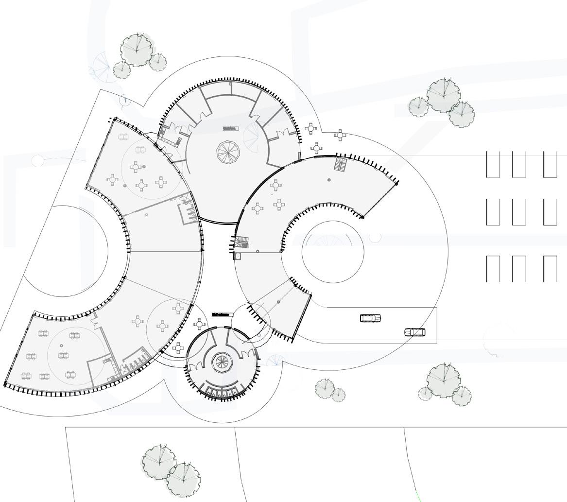 The building’s design draws from basic human emotions, using forms that represent “happy,” “calm,” “excited,” and “free” to create a dementiafriendly space. By avoiding negative emotions like “angry” and “fear,” the structure emphasizes tranquility, with fluid forms, natural views, and gentle pathways that promote calmness, accessibility, and connection to nature for individuals with dementia