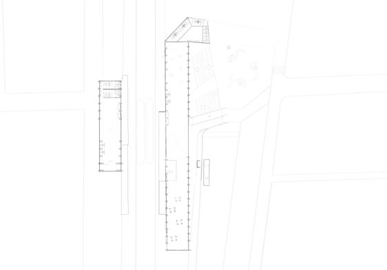 While two smaller building are placed between 2 public spaces in order to connect circulation between public and private- make it easier for dementia.