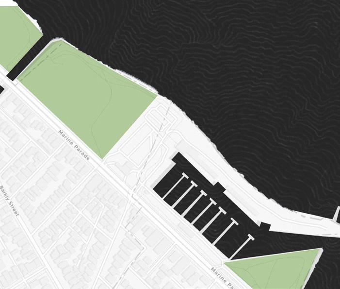 The problem of this area is the lack of canopy along the walkway, so using the columns with the interlocking structure can both cover the walkway and can be a hangover in the waiting place. Their height also makes the site noticible from all directions Tall columns run along the lenght of walking paths clearly divide lanes for each type of vehicle (walking path, bike lanes, car/bus lanes, railways). Widen pathways and provide canopies to make a sense of separation between spaces forming a sense of territoriality