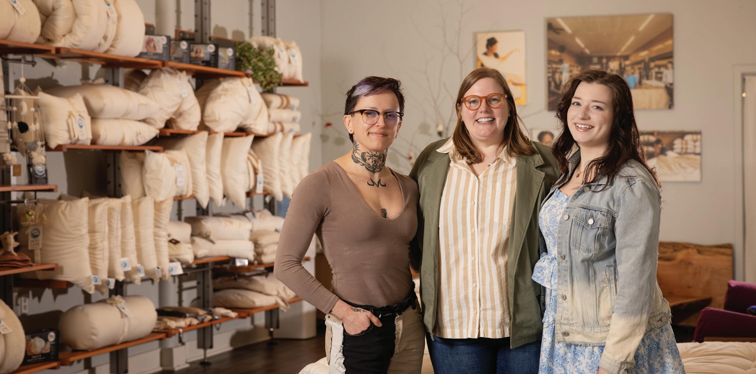For more than 25 years, Holy Lamb Organics has built its business around a simple idea: sustainability should be the foundation of a company—not an afterthought. Through its flagship showroom, Olympia Bed Store, the company produces handcrafted organic bedding and partners with local businesses to offer natural, sustainable bedroom products.