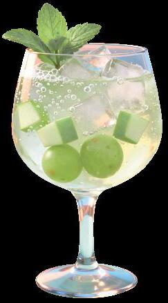 4. Añade la fruta y termina con una hoja de menta fresca, como el último gesto antes del brindis.