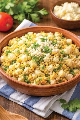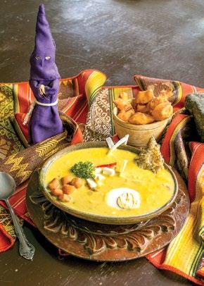 15. Decorar con la guarnición, empanadita de viento, queso fresco, huevo duro, maduro, palmito y una ramita pequeña de cilantro.