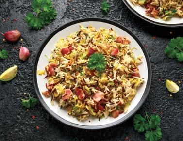 El arroz navideño puede tener muchas variantes, pues se trata de un receta originaria de España y algunos paí ses árabes, pero en Ecuador se ha in fluenciado y adaptado con los ingredientes típicos. Pilar Woloszyn, en su blog Confieso que cocino, comparte recetas de su autoría y conocimiento en torno a la gastronomía local e internacional (https://www.con fiesoquecocino.com/arroces-navidenos/). Ella presenta una opción de arroz navideño con tocino y verduras.