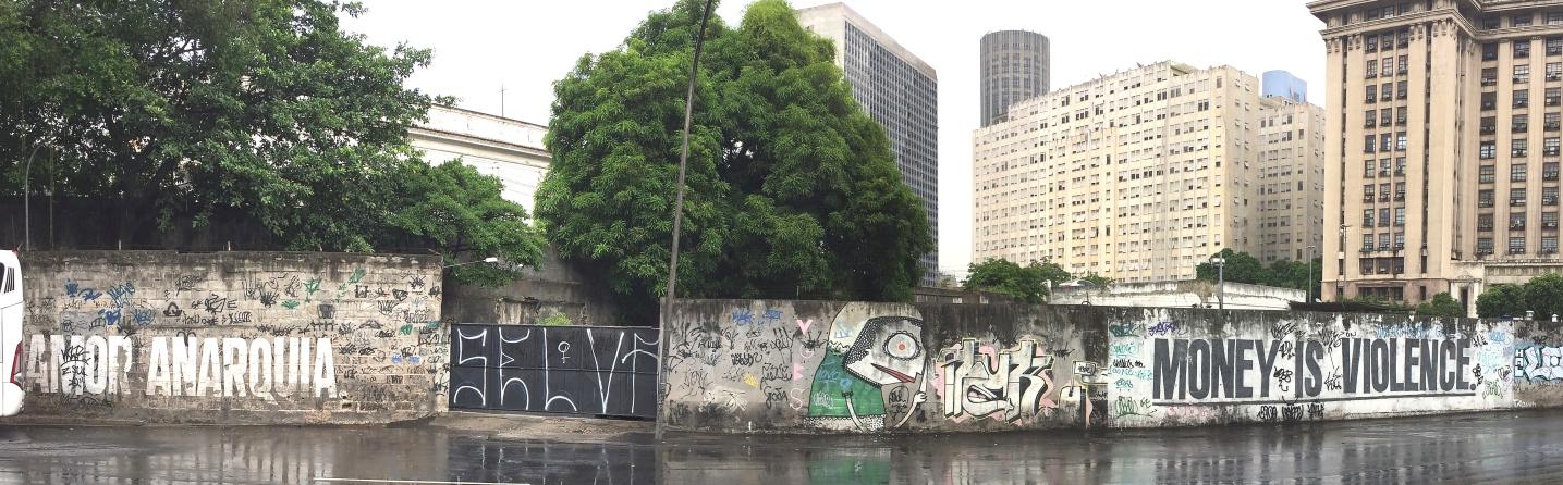 Residual Space 03 / partial panorama photo / The wall of the parking lot of the Ministry of Finance - Centro-RJ, an underused and inaccessible space on Rua Marechal Aguinaldo Caiado de Castro. Inhospitable and silent area around Praça do Expedicionário, reinforced by the mono-functional and homogeneous character of the Judiciary Complex. Potential _ Large space and cradle of the formation of the city of Rio de Janeiro-RJ (formerly Morro do Castelo-RJ).