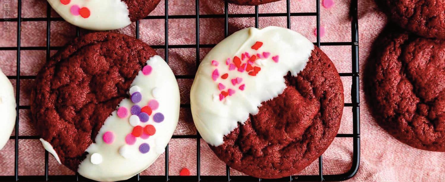 3/4 cucharadita de colorante alimentario rojo en gel (o alternativo)* dos barras de 226 g (4 onzas) de chocolate blanco, picado en trozos grandes* 2-3 cucharadas de chispas