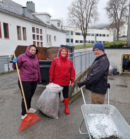 Her ble det arrangert dugnad over tre dager. Siste dag ble det endelig fint vær med kakepause på fellesområdet.
