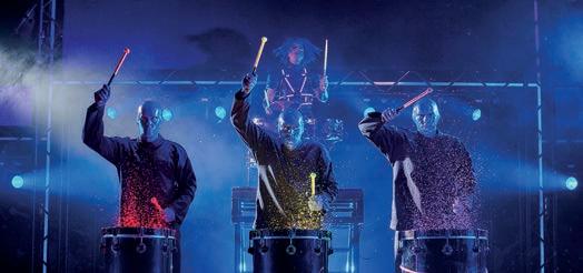 Die drei kahlköpfigen blauen Charaktere werden bei ihren Slapstick-Eskapa den nunmehr durch einen weiblichen Protagonisten, „The Musician“, beglei tet, die als Multiinstrumentalistin die traditionelle Band ersetzt. Mit auffallend blauem Haar und einem exzentrischen, außerirdischen Look, führt sie als eine Art schamanenhafter „Master of Ceremonies“ durch das Programm. Die Show hat viele neue Wendungen, aber natürlich finden sich darin unverzicht bare Evergreens wie Wasserwirbel-Trommeln, Marshmallow-Werfen und Farb-Spucken.