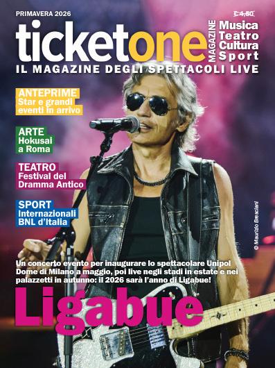 È ancora vivo il ricordo delle emozioni che ci hanno regalato i Giochi Olimpici e Paralimpici Invernali di Milano Cortina 2026 e siamo già pronti a tornare in prima fila per una nuova stagione di grandi eventi live. Iniziamo dalla nostra copertina dedicata a Ligabue, protagonista nel 2026 di una serie incredibile di concerti, dalla cerimonia di inaugurazione dell’Unipol Dome di Milano il 6 maggio al tour nei palazzetti in autunno passando per un’estate negli stadi. Proseguiamo con un altro grande nome della musica italiana, Max Pezzali che sarà anche quest’anno protagonista dell’estate italiana con un lungo tour negli stadi per poi chiudere in bellezza il 2026 con una recidency all’Unipol Dome di Milano. A seguire vi segnaliamo uno degli artisti più quotati della scena indie italiana, Frah Quintale, impegnato questa primavera con un tour nei palazzetti e quest’estate con una lunga serie di live nei maggiori festival italiani. Restiamo tra gli artisti che hanno conquistato grande popolarità negli ultimi anni con Tedua, per la prima volta alle prese con il palco di San Siro. Ultimi non certo per importanza i Duran Duran che tornano in Italia per una serie di esibizioni nei luoghi più suggestivi del nostro Paese. Passando al teatro iniziamo la nostra carrellata con l’Opera Festival all’Arena di Verona, appuntamento irrinunciabile per gli amanti del genere provenienti da tutto il mondo. Proseguiamo segnalandovi il Festival del Dramma Antico, la manifestazione che richiama al Teatro Greco di Siracusa un pubblico di appassionati sempre più numeroso. Sempre rimanendo in tema di luoghi unici che l’antichità ci ha regalato vi segnaliamo lo spettacolo di Alessandro Barbero al Circo Massimo di Roma: una serata evento dedicata alla figura di San Francesco. Chiudiamo la serie dei nostri suggerimenti di teatro con Luca Argentero che porta in tournée nei maggiori teatri italiani uno spettacolo dedicato alle vite straordinarie di tre grandi campioni dello sport. Apriamo le pagine dedicate all’arte con una grande mostra in programma a Roma dedicata al maestro dell’arte giapponese Hokusai e con quella in programma a Parma per celebrare i cinquant’anni dall’uscita di Novecento, film cult di Bernardo Bertolucci. Chiudiamo in bellezza con due grandi eventi di sport in programma questa primavera: l’appuntamento con il meglio del tennis mondiale in occasione degli Internazionali BNL d’Italia di Roma e quello con il grande circo del motomondiale in arrivo sullo spettacolare circuito del Mugello per il Gran Premio d’Italia. Come sempre, se in queste pagine non trovate l’evento che fa per voi, vi ricordiamo di visitare il nostro sito dove trovate questo e molto altro, il posto giusto se siete in cerca di un’ispirazione per godere al meglio del vostro tempo libero. L’evento dei vostri sogni vi aspetta, è a portata di biglietto, su TicketOne.it!