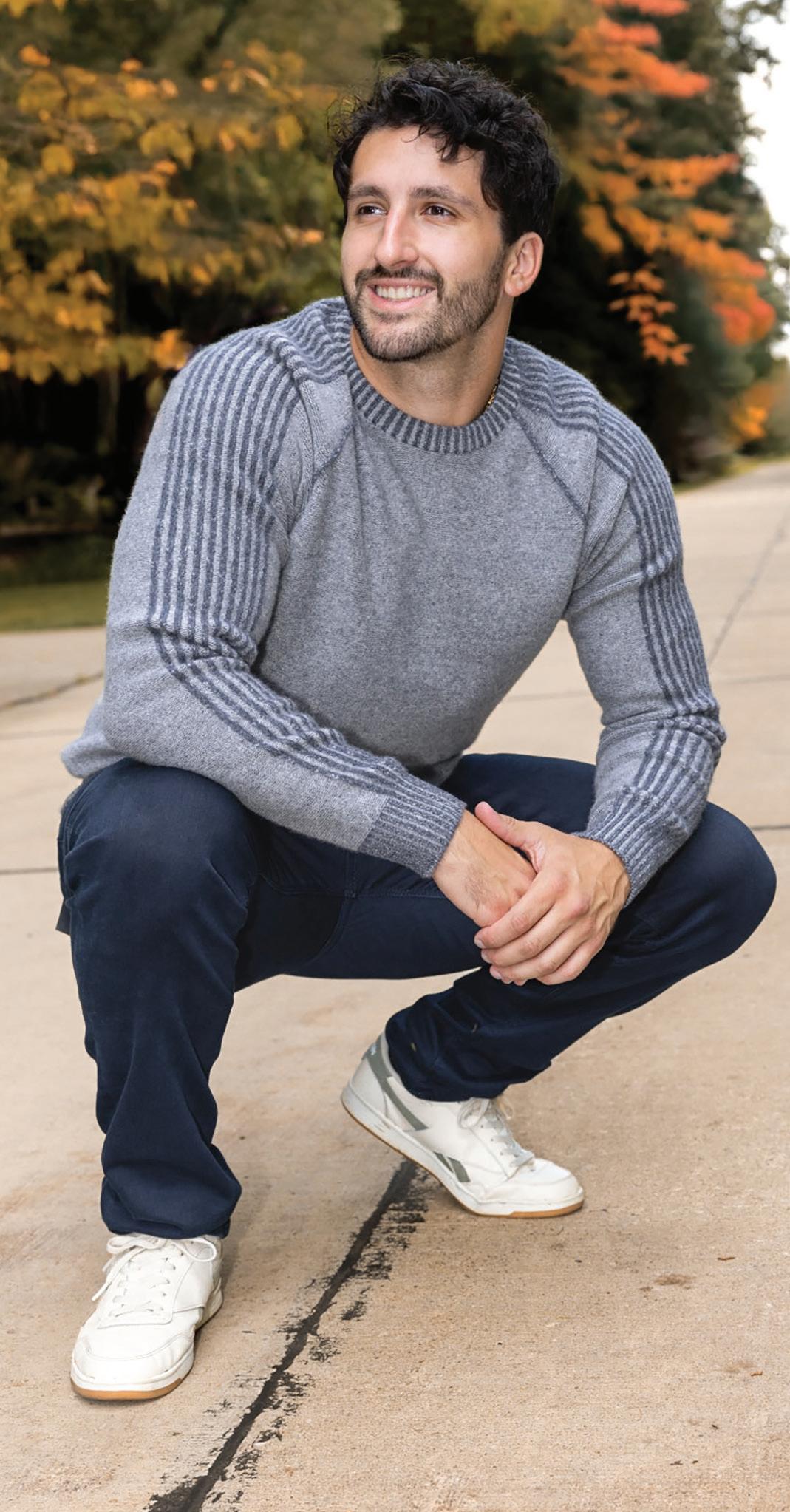 f.) Raffi | Crew neck sweater | Acorn with ribbed detailing. | HWD12682-ACRN Sizes: S-2XL $295