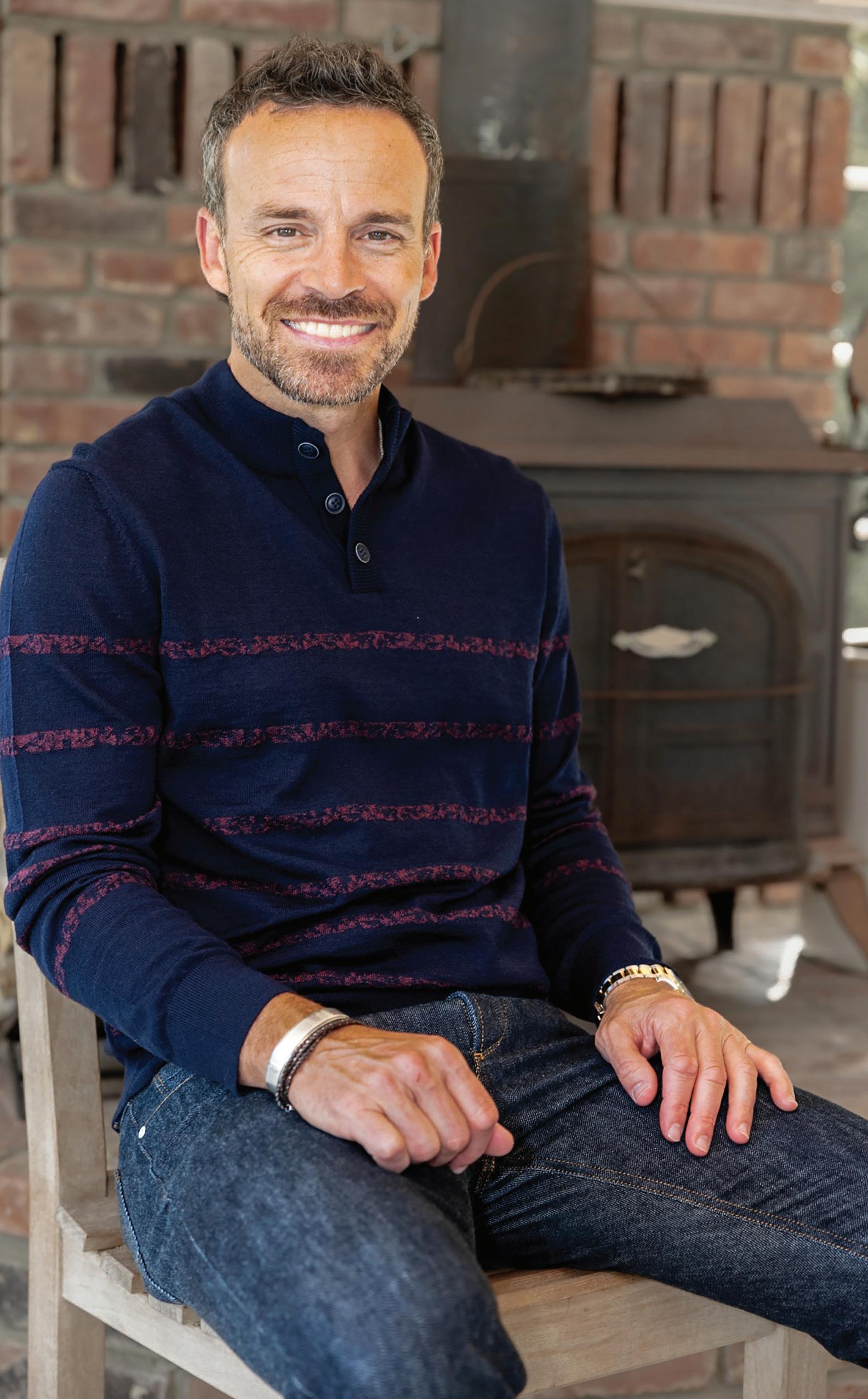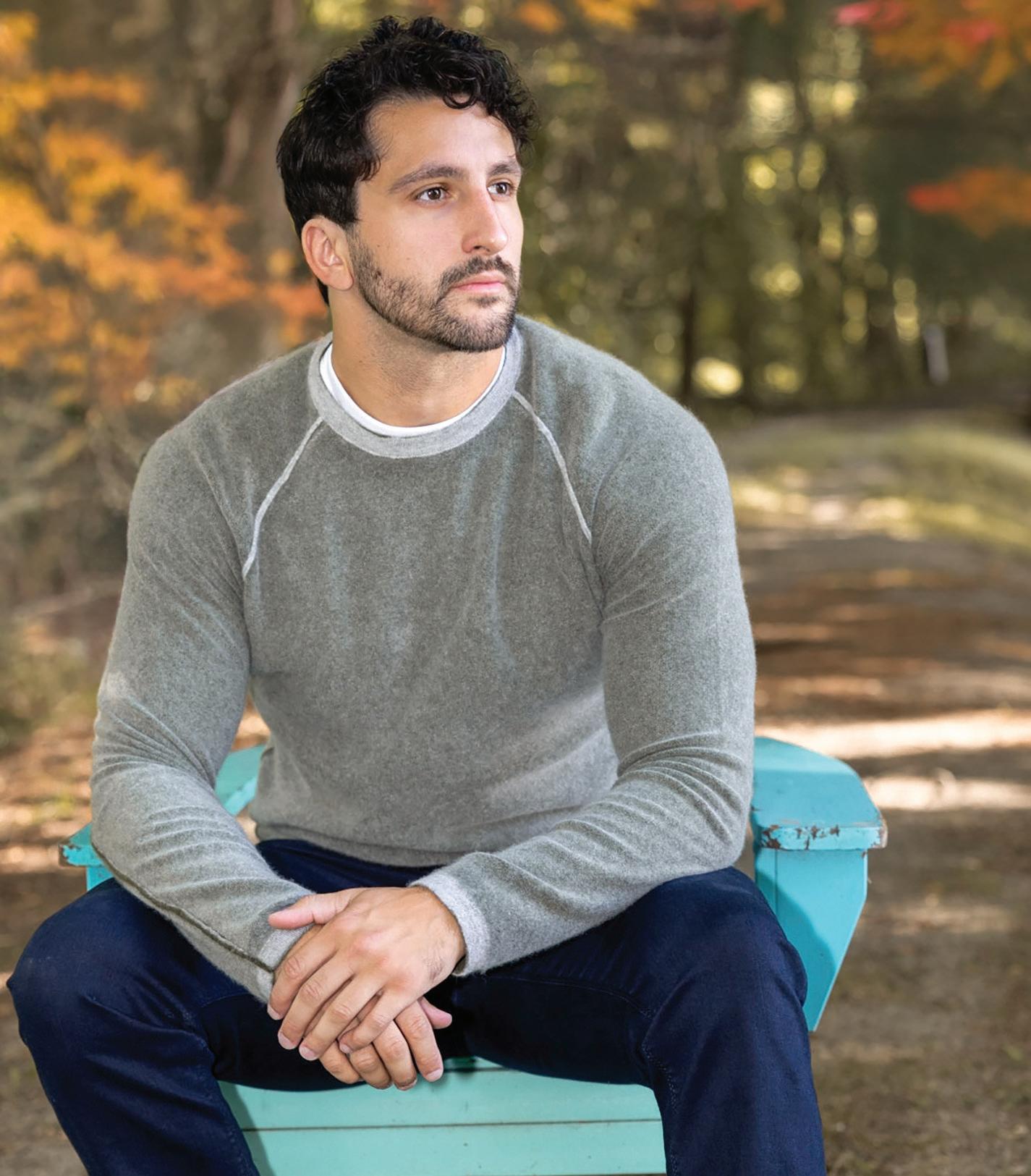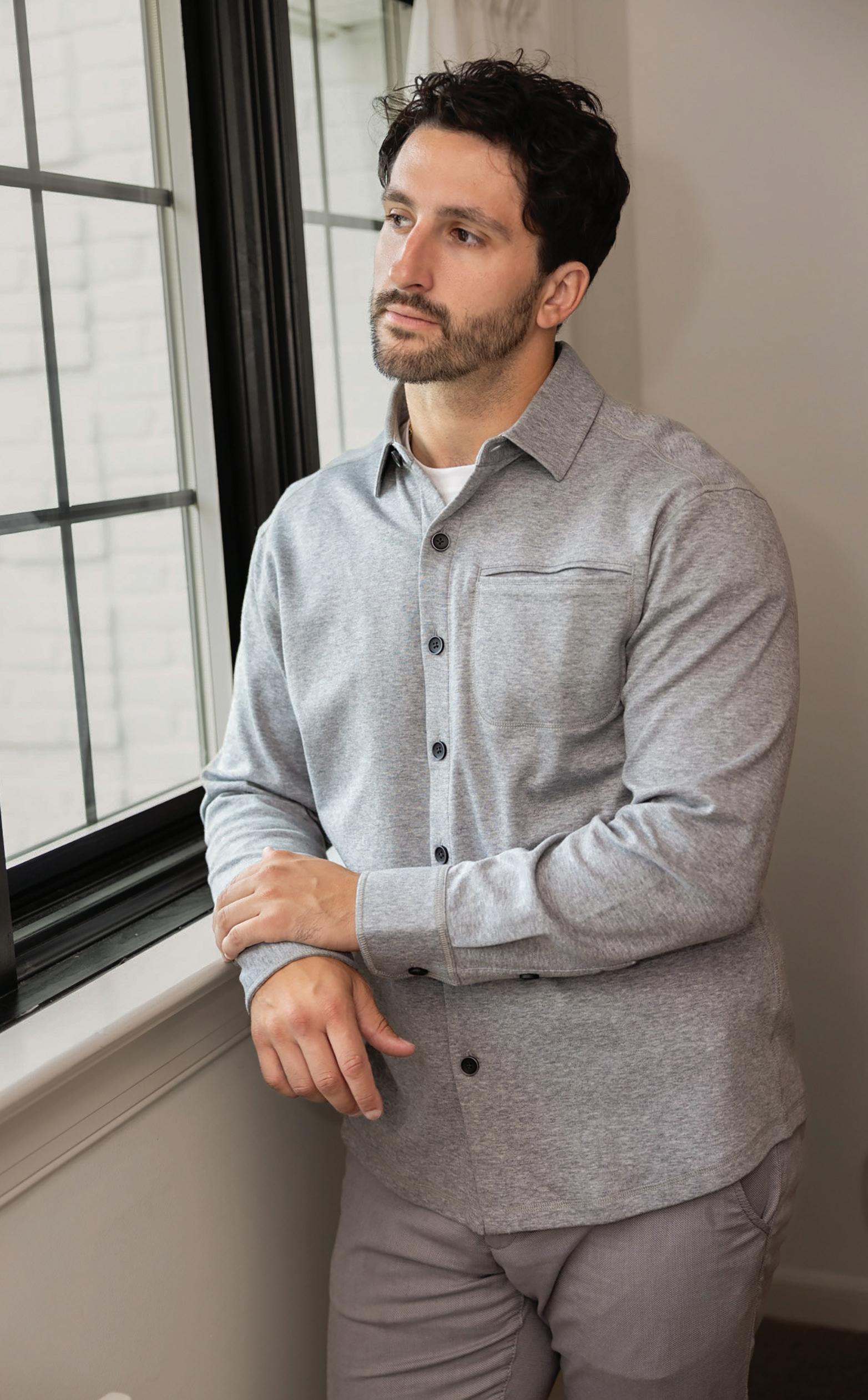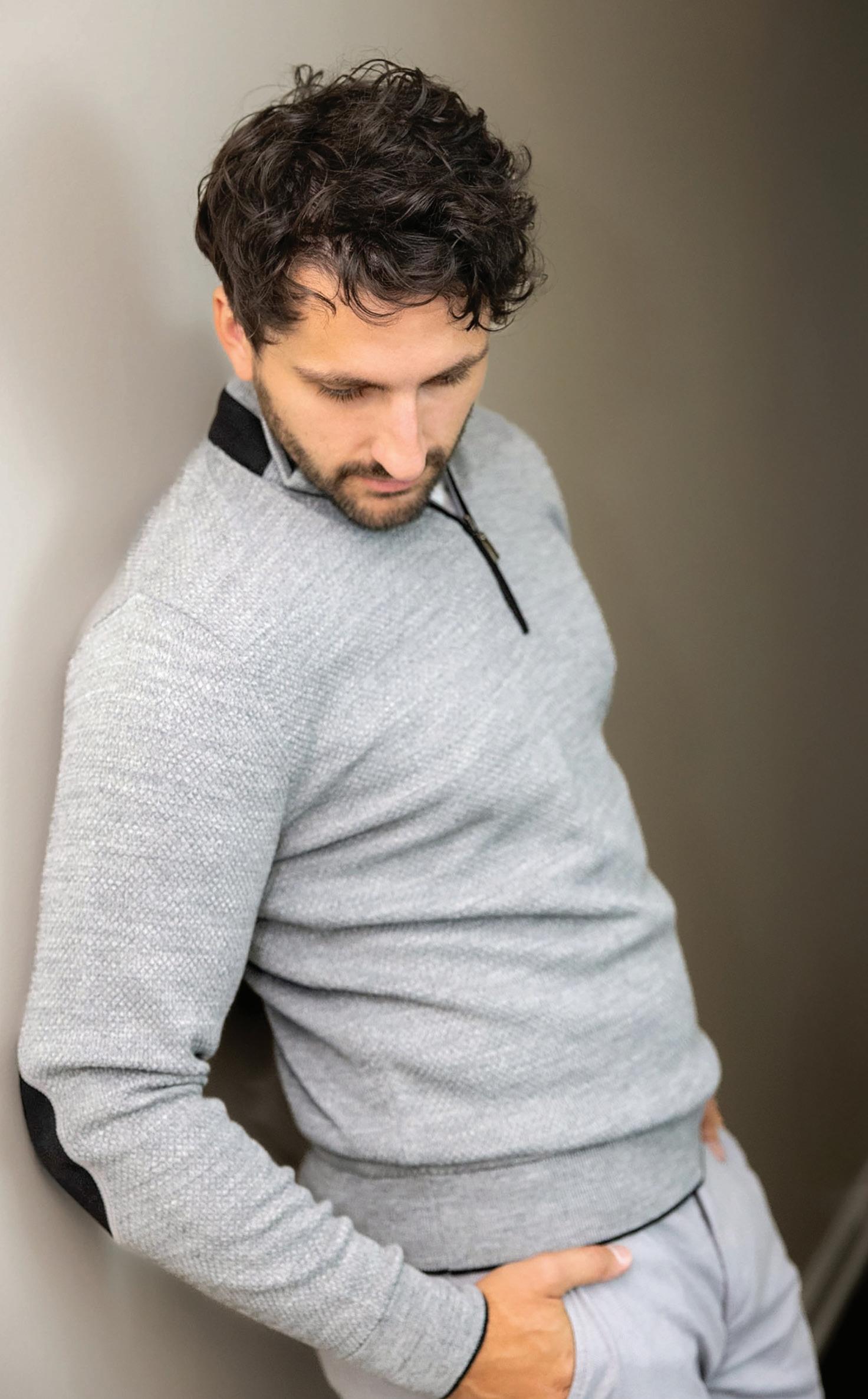 a.) Robert Barakett | 100% Extrafine merino wool henley sweater. | Charcoal. | ESTRM Sizes: S-2XL $198.50