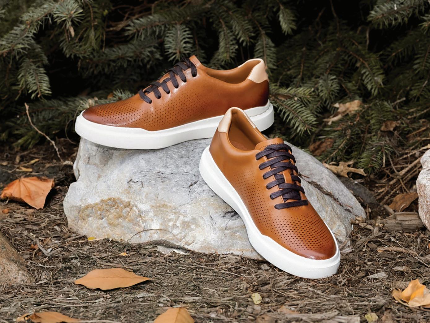 a.) Cole Haan | Laser cut perforated leather shoe with comfort sole. | Tan. | C31218 Sizes: 8.5-13 $160