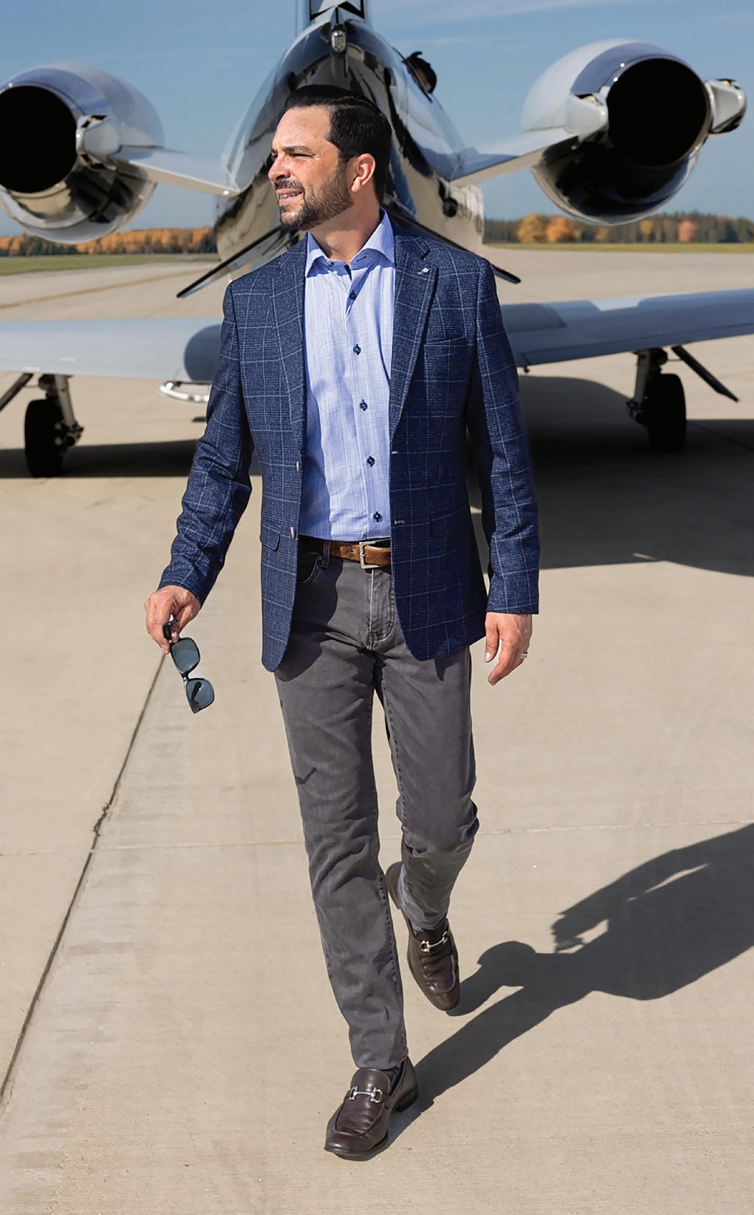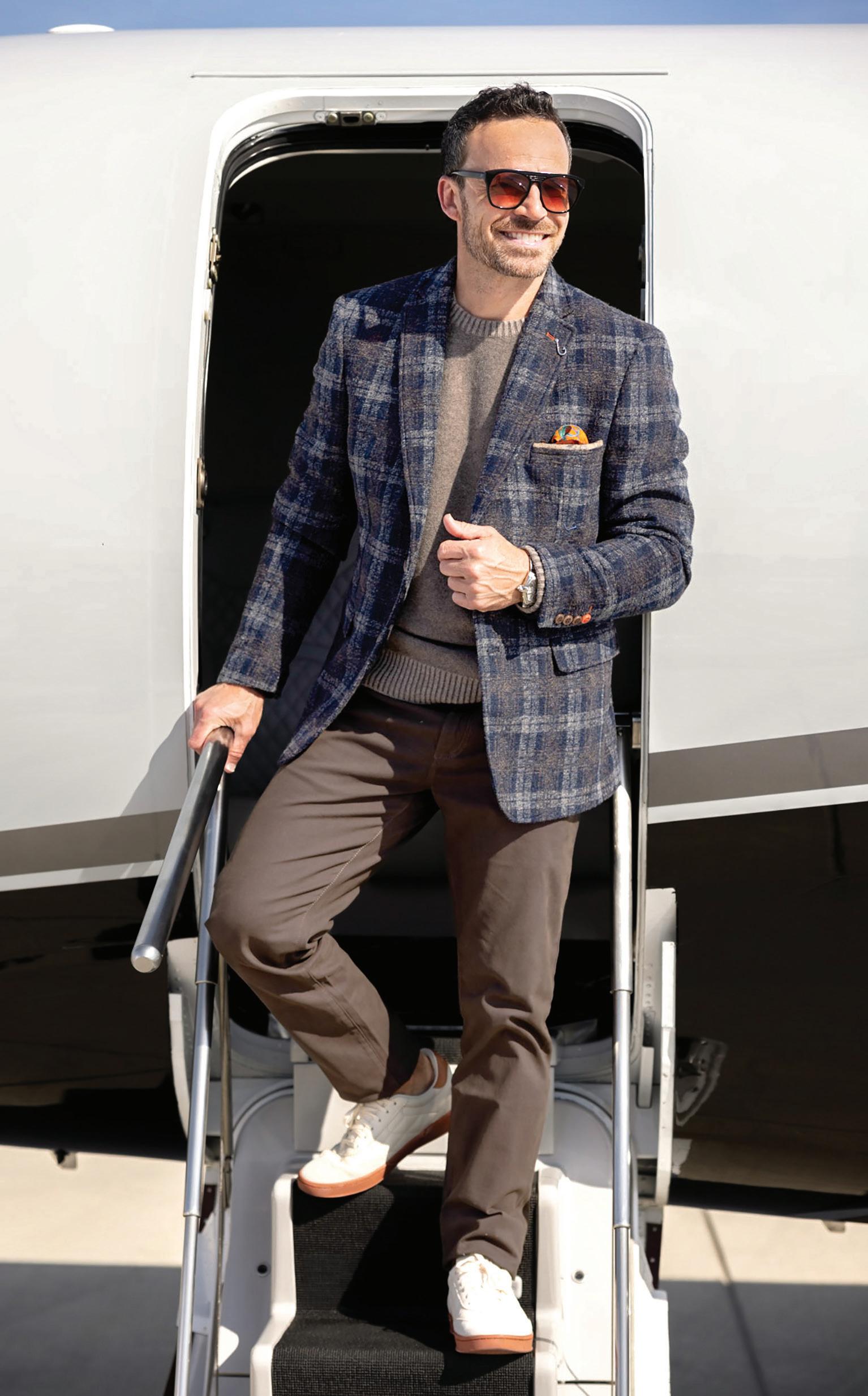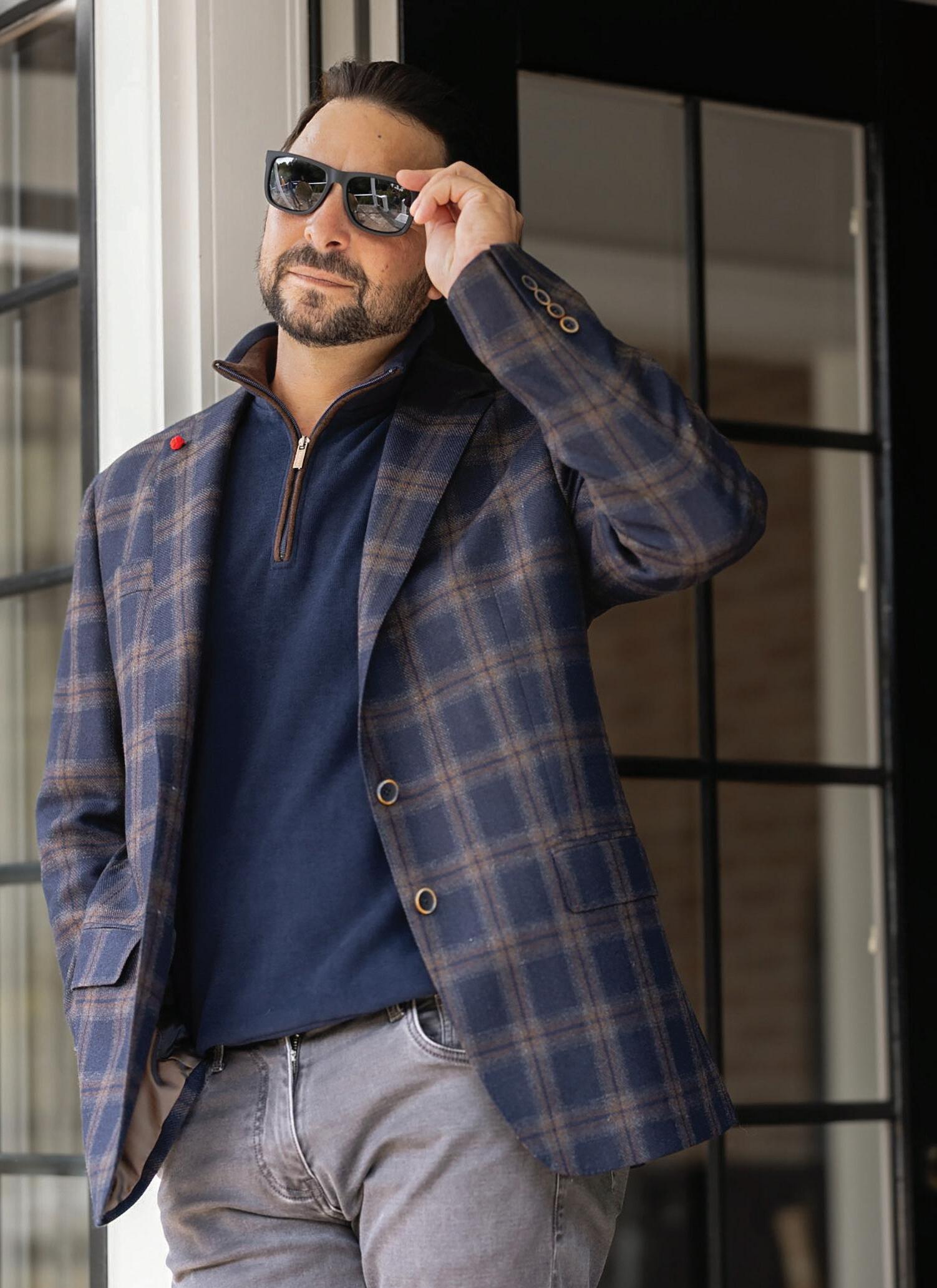 TailoRed | 8% Cashmere, 92% Wool-laine notch lapel sport coat. | Navy and Brown plaid. | 8150422 Sizes: 40-54R, 38-44S, 42-52L $850 $799.99