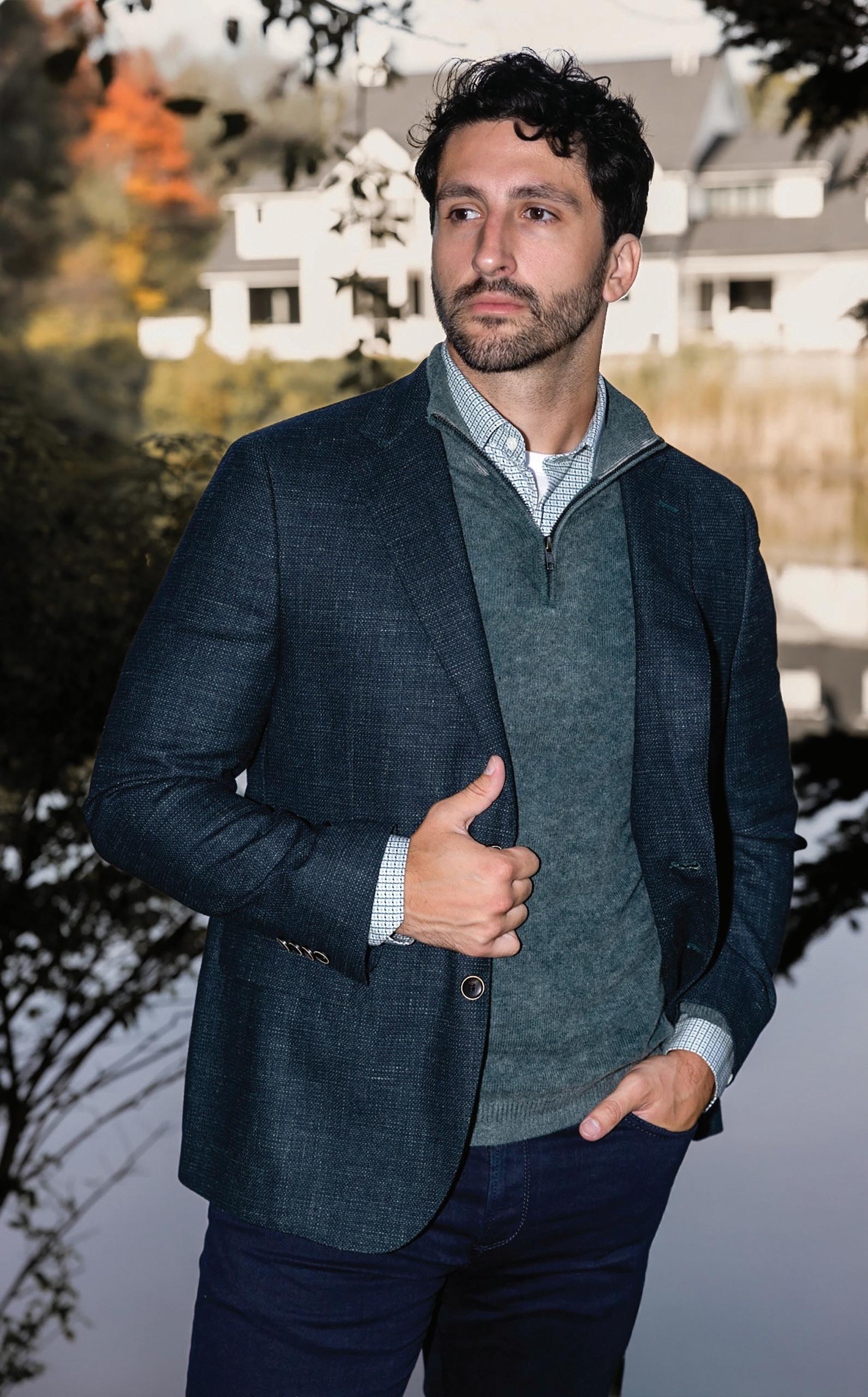 e.) A Fish Named Fred | Wool-blend sport coat. | Chocolate checkered pattern. | 29-106200 Sizes: 38-52 $495