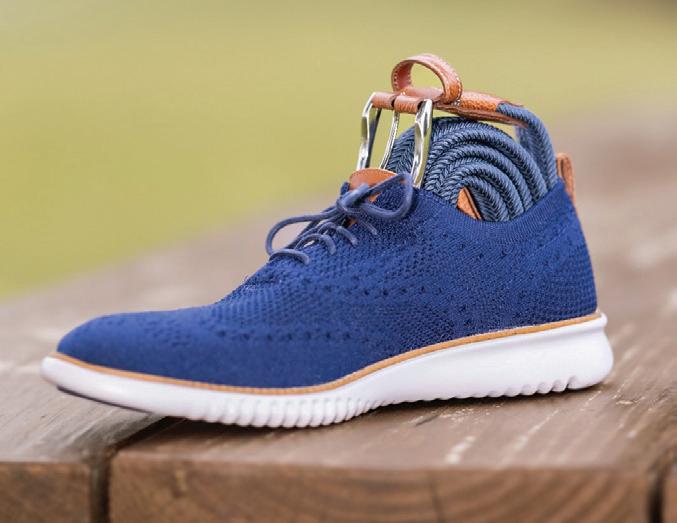 e.) Cole Haan | Knit wingtip shoe with comfort sole. | Navy. | C38829 Sizes: 8.5-13 $180
