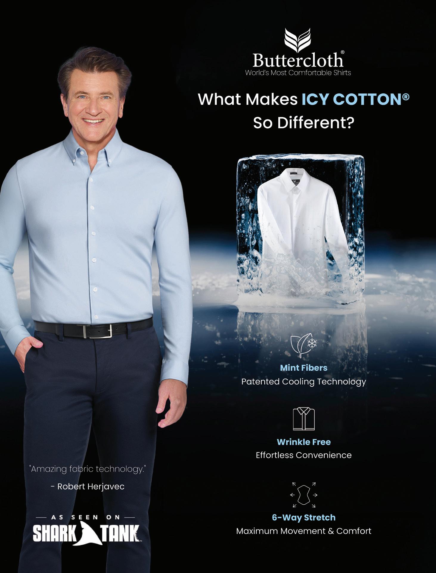 b.) Buttercloth | Icy Cotton® sport shirt. | Available in White, Ice, Dynamic, and Blue. | WV9- Sizes: M-XL $175