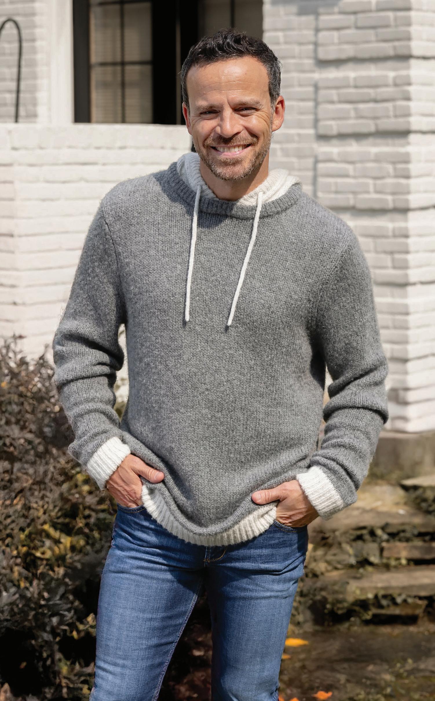c-d.) Nicoby | Henley hooded lightweight sweater. | Sizes: S-2XL $115