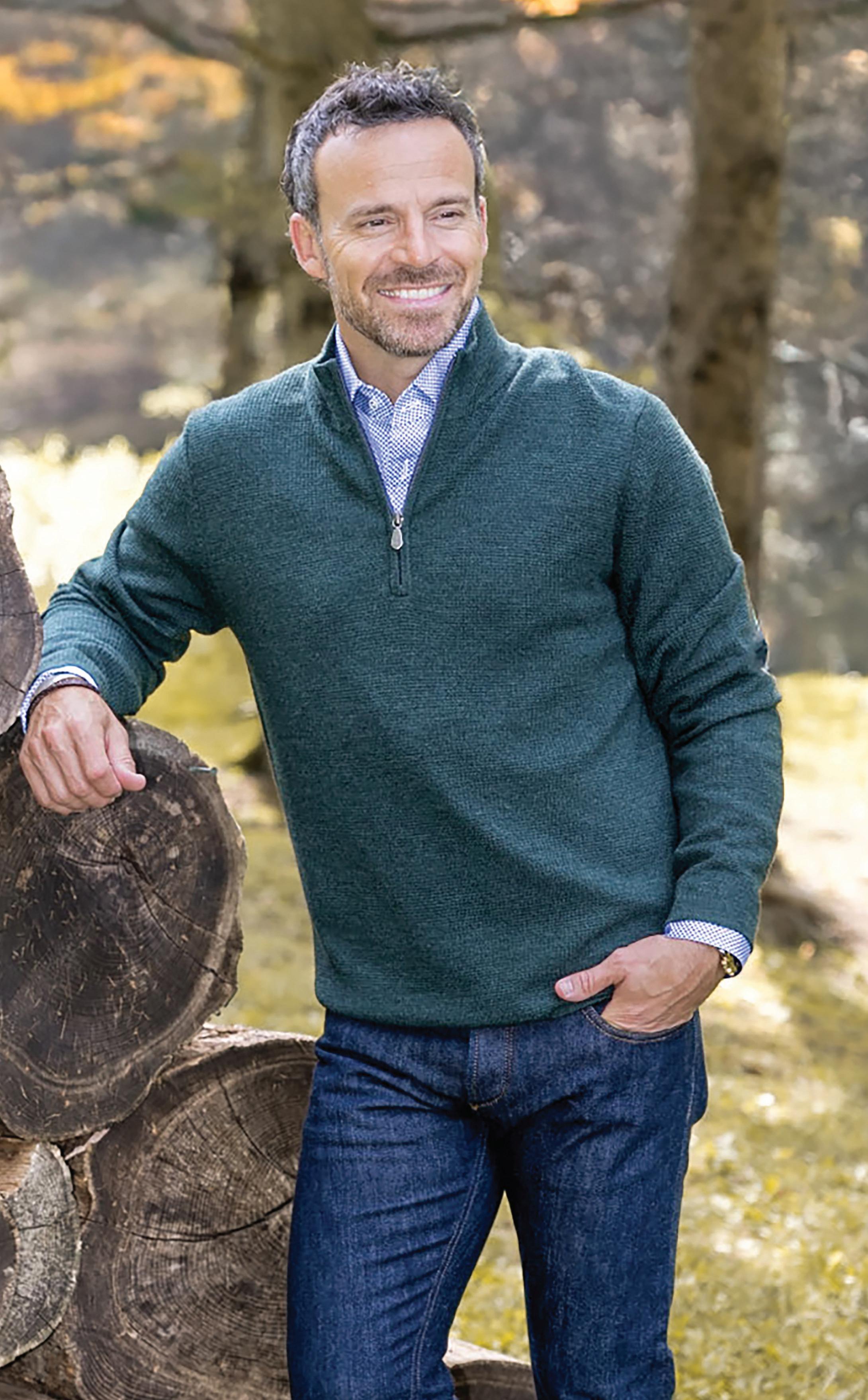Raffi | 100% Merino Wool quarter zip sweater. | Forest. | HWC11768