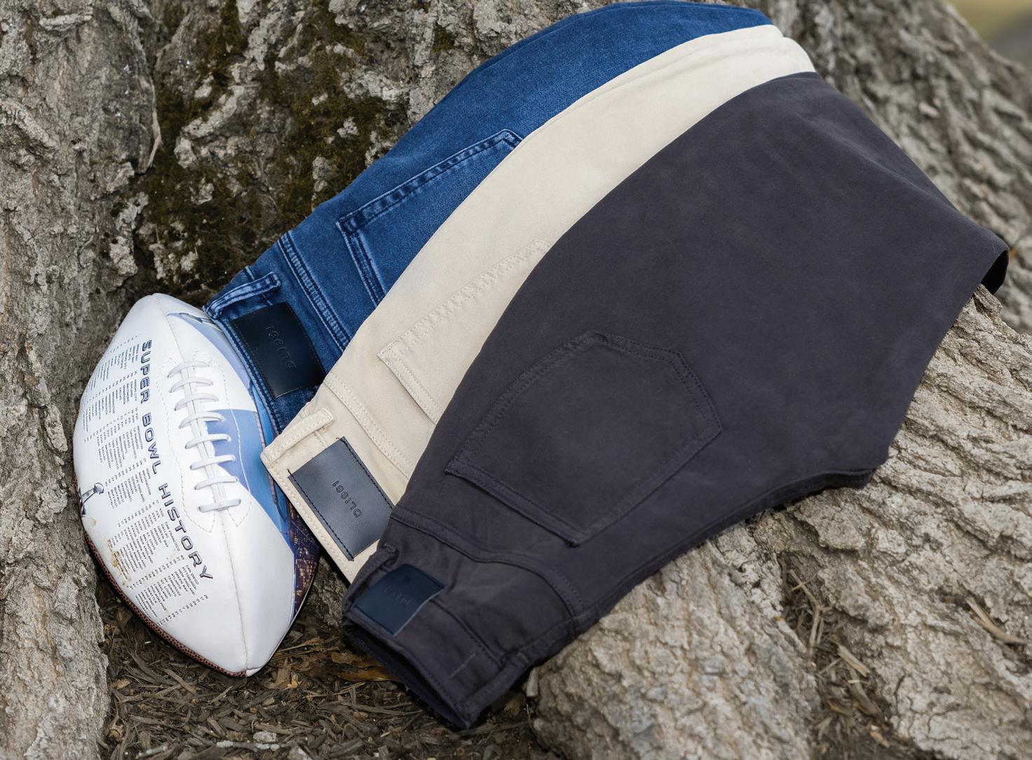 b-d.) Inpore | Cotton blend stretch denim. Sizes: 30-40 $145