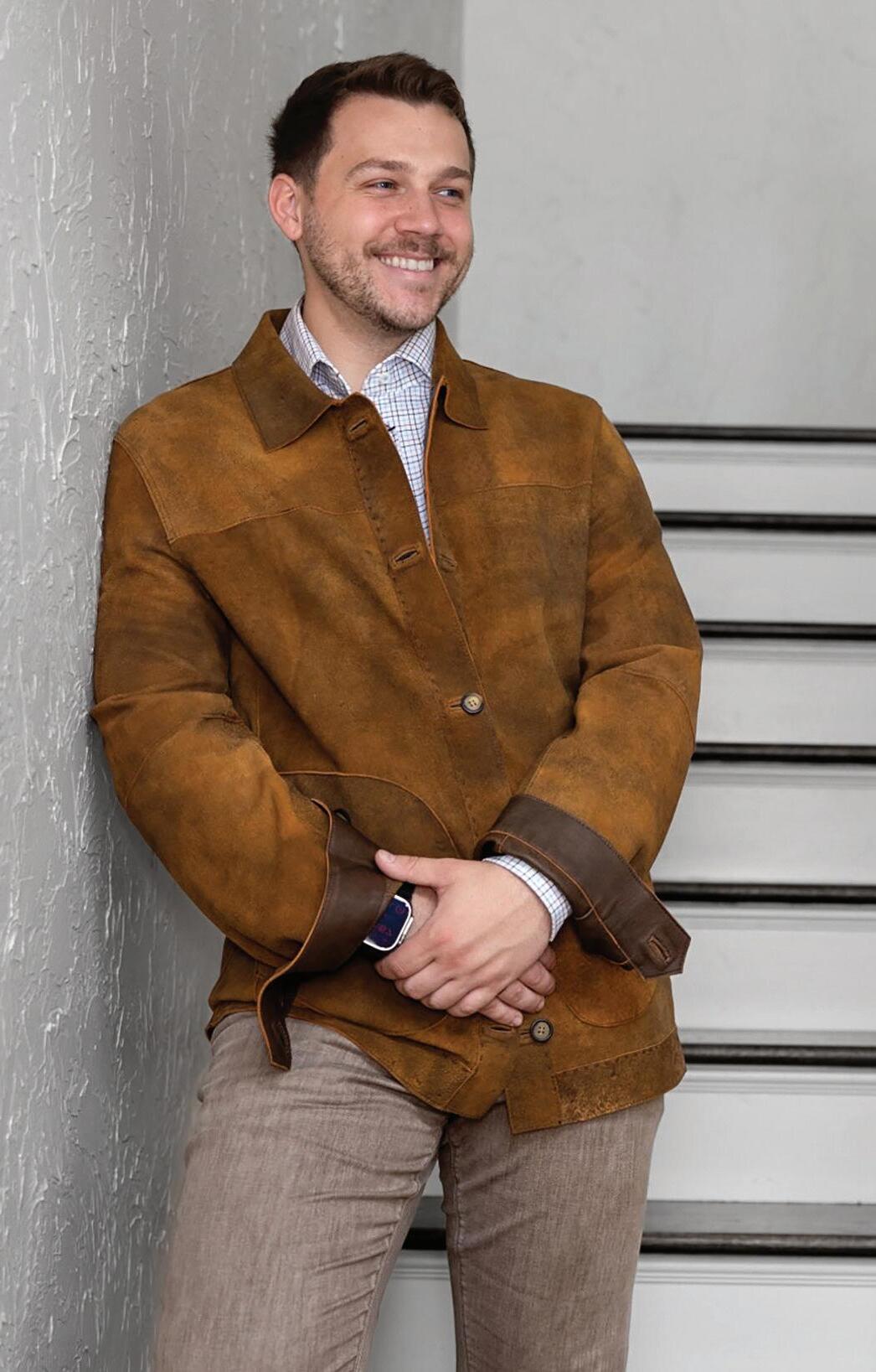 e.) Alberto Zimni | 100% goatskin sueded leather full zip jacket. | Mushroom. Also available in Brown.| 3434 Sizes: S-3XL $650 549.99