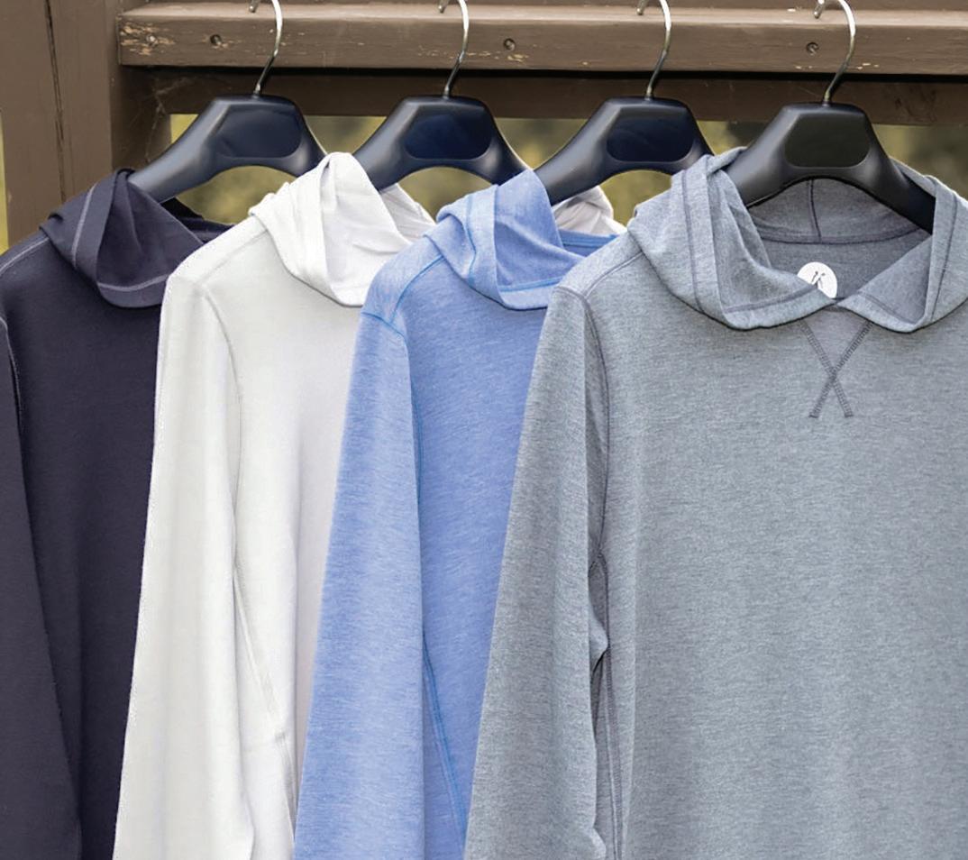b.) Toes on the Nose | 4 Way stretch, ultra-soft wrinkle resistant hooded shirt. | Ocean. Also available in Oyster, Grey, and Black. | TK812 Sizes: S-2XL $98.50
