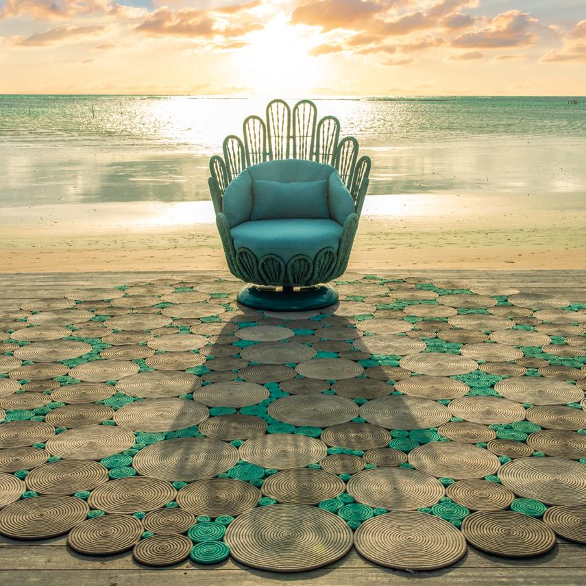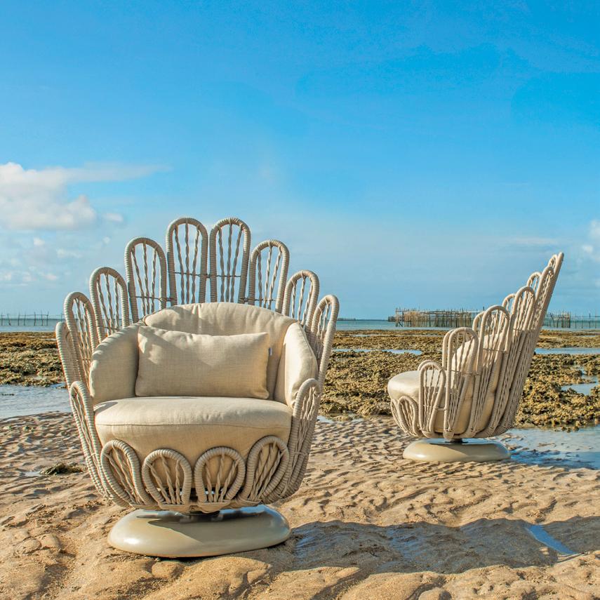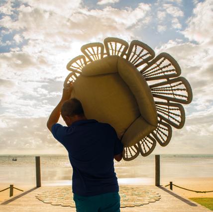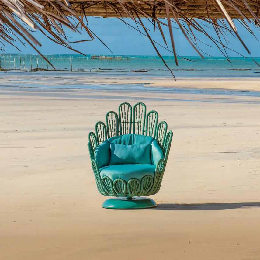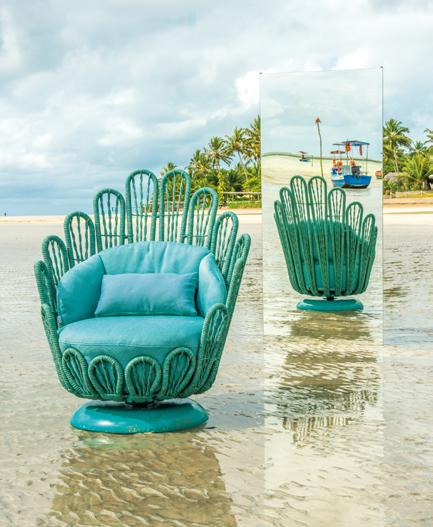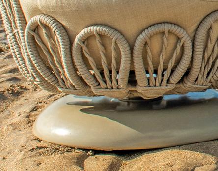 A maestria da Tidelli no trançado de cordas náuticas encontra a delicadeza das rendas que inspiram o trabalho de Martha Medeiros, dando vida a uma forma escultural que lembra uma concha que se abre para revelar seu tesouro.