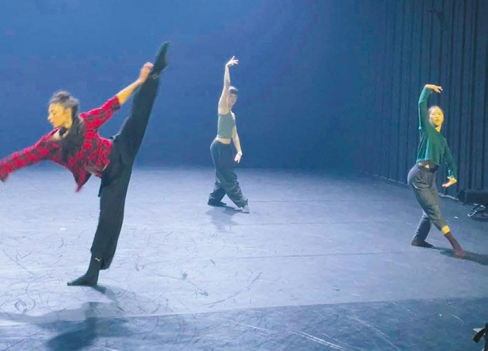 Delia Albertini från Italien, Olivia Blanch från Mallorca och Reiko Otha från Japan repetera inför föreställningen Beyond Words. Foto: Helena Roos