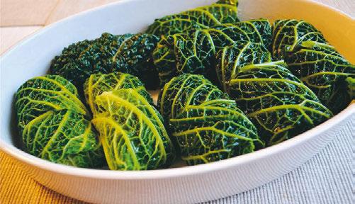 1. Läg g savojkålsbladen i rikligt med kokande lättsaltat vatten (2 tsk salt/liter vatten) och koka dem ca 3 minuter. Spola där efter bladen i kallt vatten och låt dem rinna av väl. Skär bort och tunna ner den grova nervtråden i mitten på varje blad.