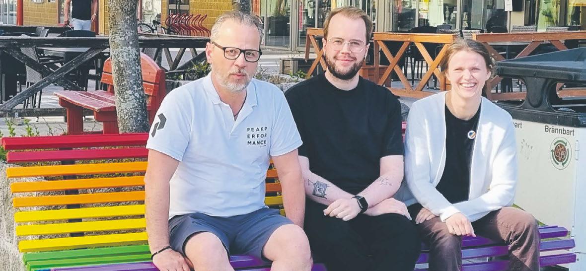 Mikael Arvidsson, Joakim Isaksson Markström och Helena Carlsson välkomnar alla till Boden Pride 2023. Foto: Boden Event